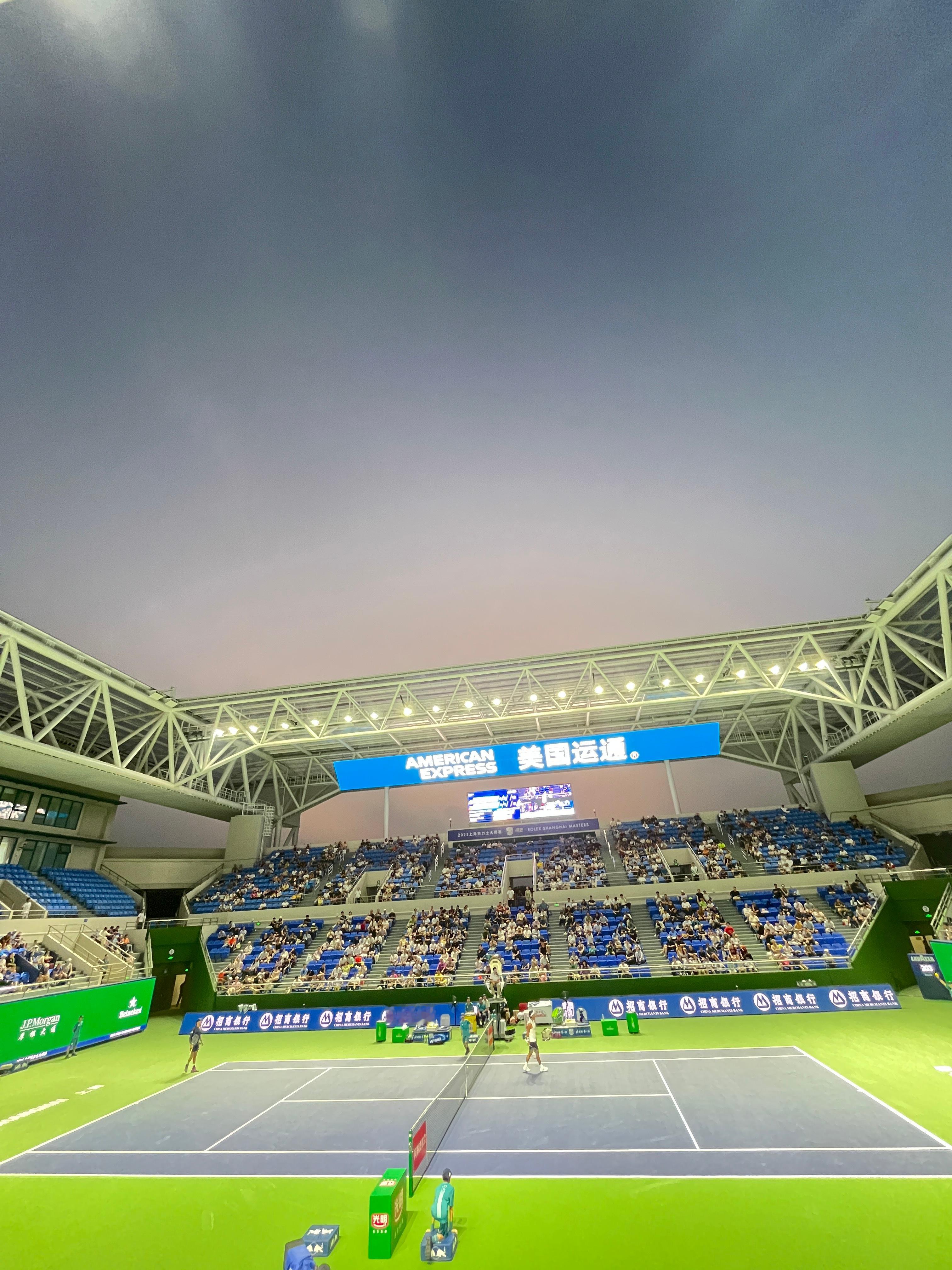 上海今年这反常天气吧,虽说打球受罪,可它出片啊!坐在2号球场看小布的比赛,偶遇一片紫色晚霞,衬着紫色的场地,美啊。。。紫气西来也算是好兆头吧?小布加油!紫定。。。(拍完照一看比分)。。。还能不能行啊[苦涩]