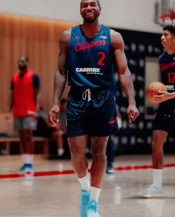 快船超级巨星伦纳德真是神采飞扬!今天快船官方更新社媒,晒出了球队在训练营的照片,