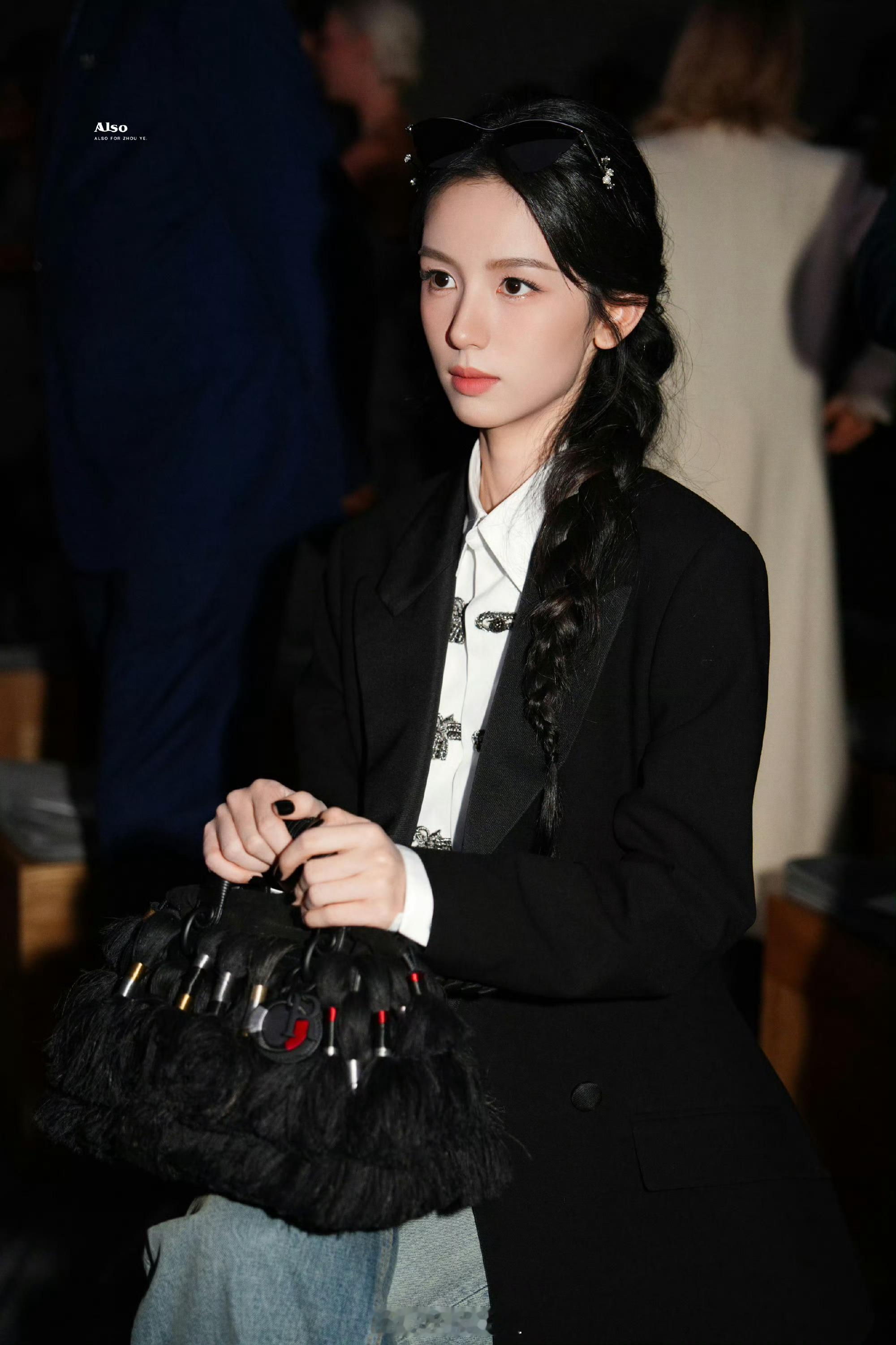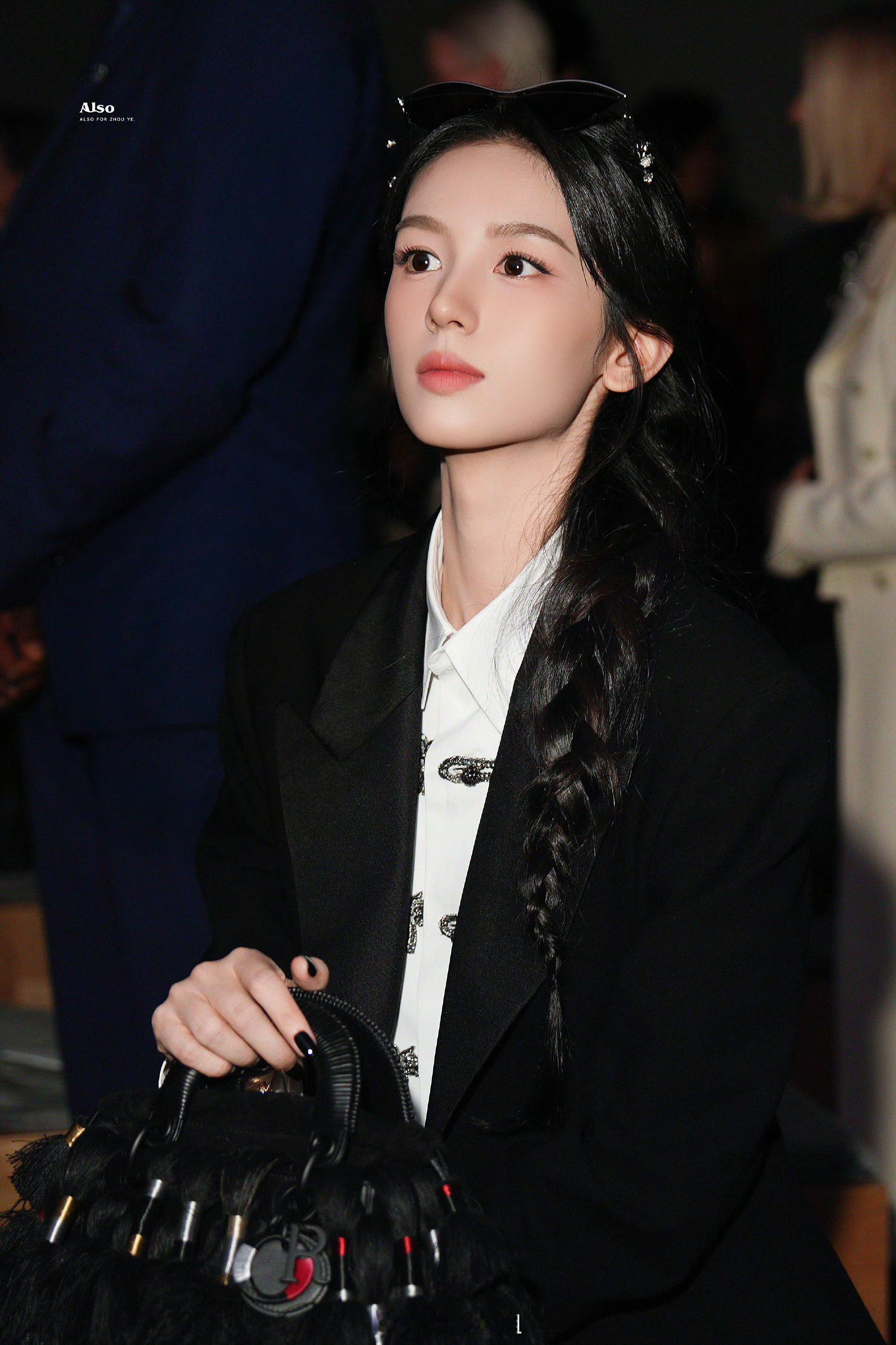周也的巴黎时装周内场路透来了,一身黑色西装搭配单边麻花辫,整个主打的是黑色系妆造,这状态能打几分呢?