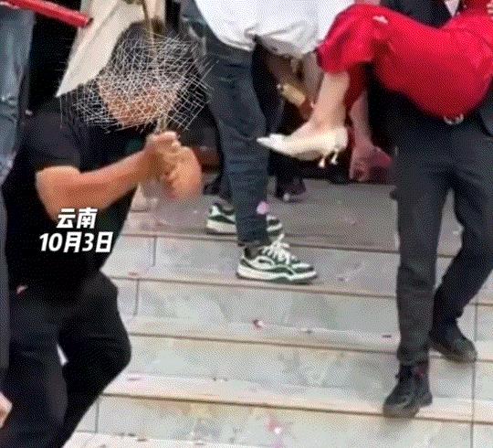 云南,一对新人大喜之日,亲朋好友前来祝贺,现场更是热闹非凡,可当新郎抱着新娘进行