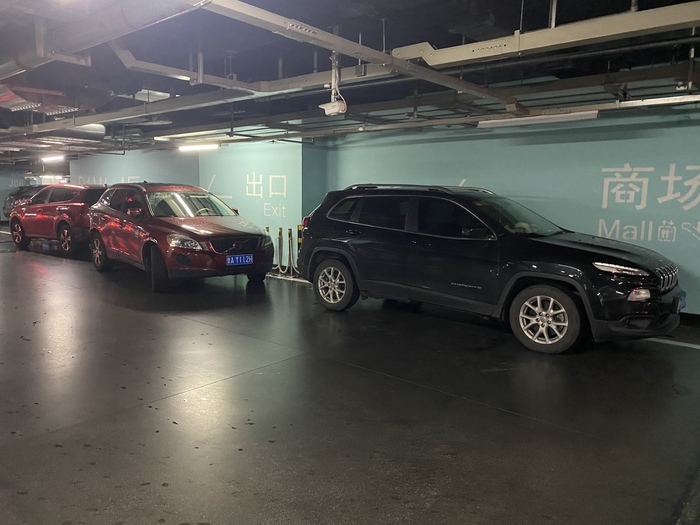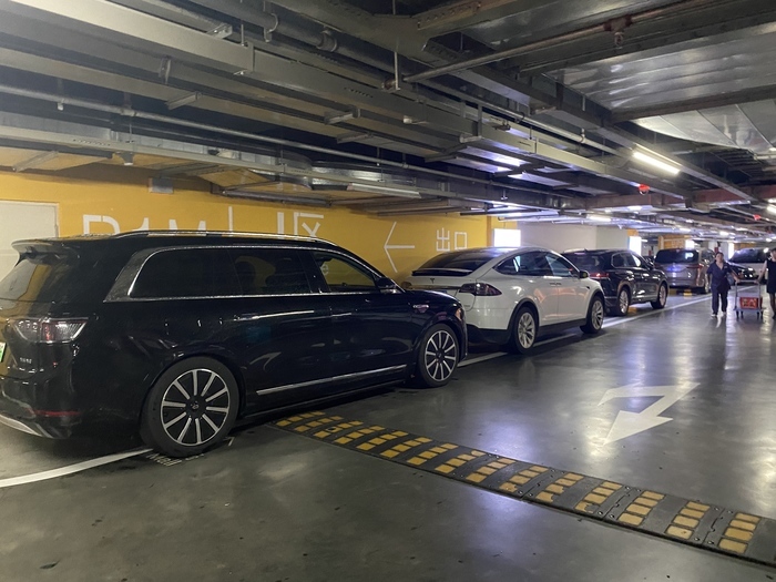 进入停车场后,记者发现地下二层设有“黑白金专属车位”,部分区域空置,但普通车主需继续下行至地下三层。该层车位已满,数十辆车未按规停放,直接占用了行车通道,导致晚8点左右出现内部拥堵,车辆通行缓慢。