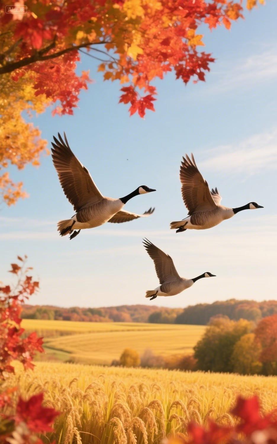#每天一首诗词分享# 《七绝·秋景》/马进鹏 层林染透赤霞飞, 金稻翻波映落晖。 风过疏桐飘碎玉, 雁鸣长唳送清辉。