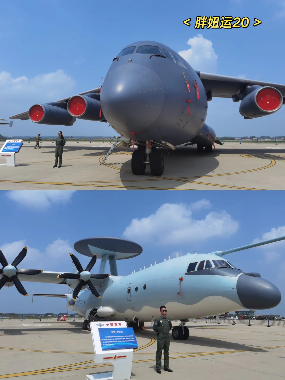 观看组:先跟静态展区大飞机合影,主要胖妞运20很可爱!9点之前抵达观展区或就地前排看就行~