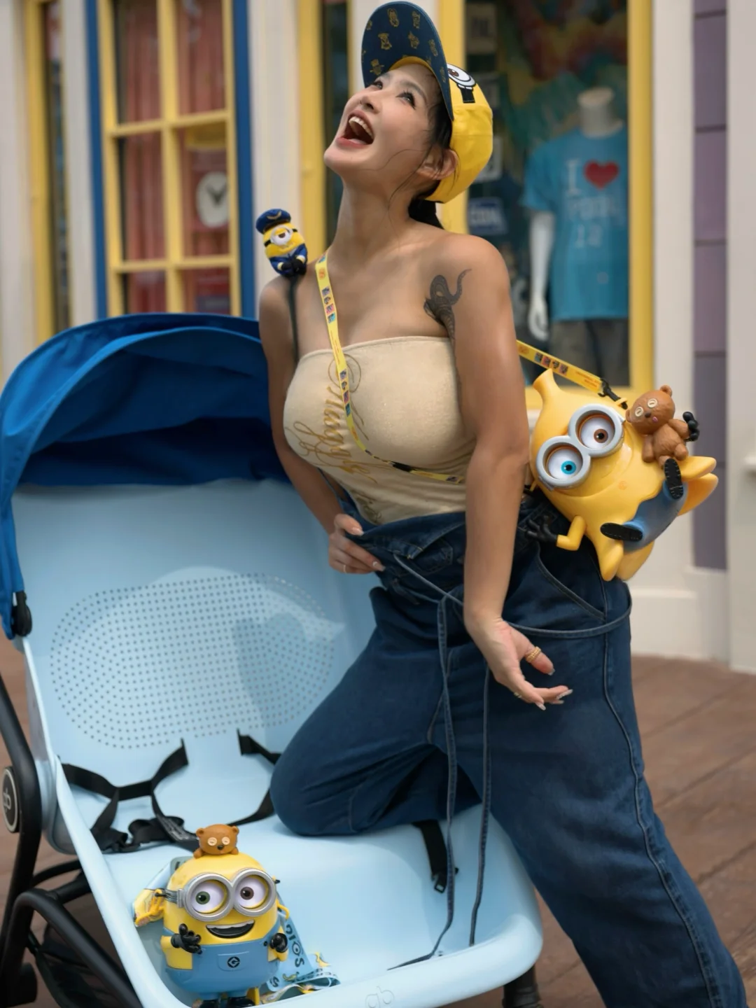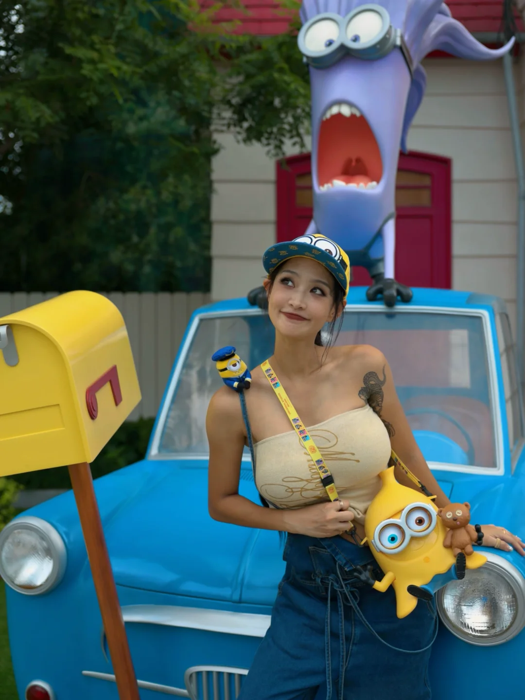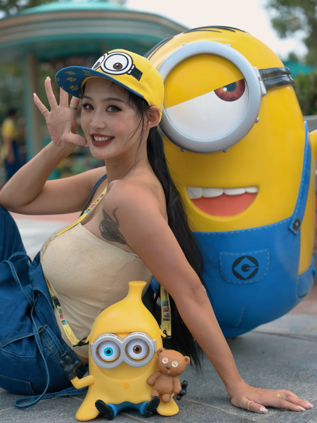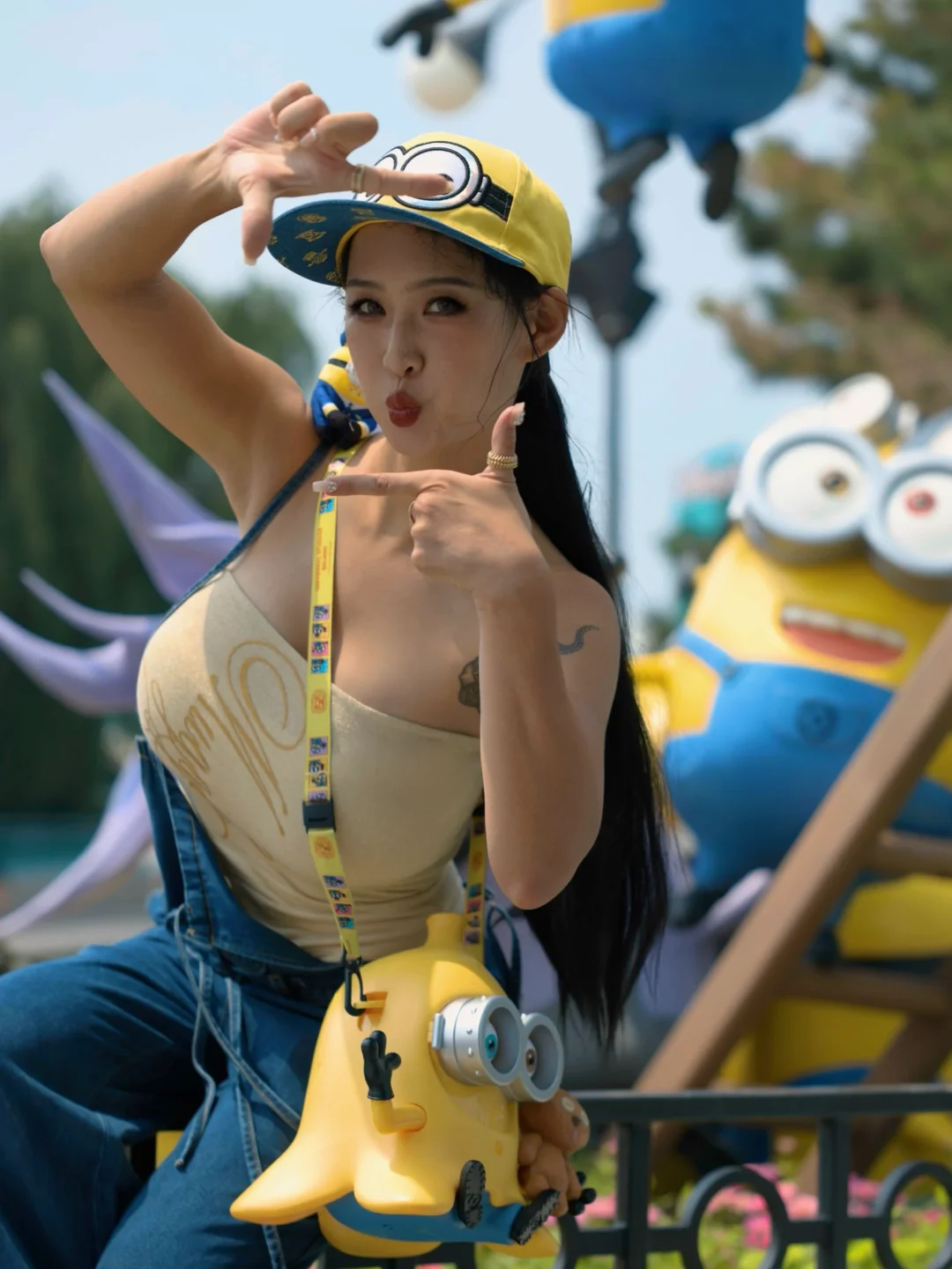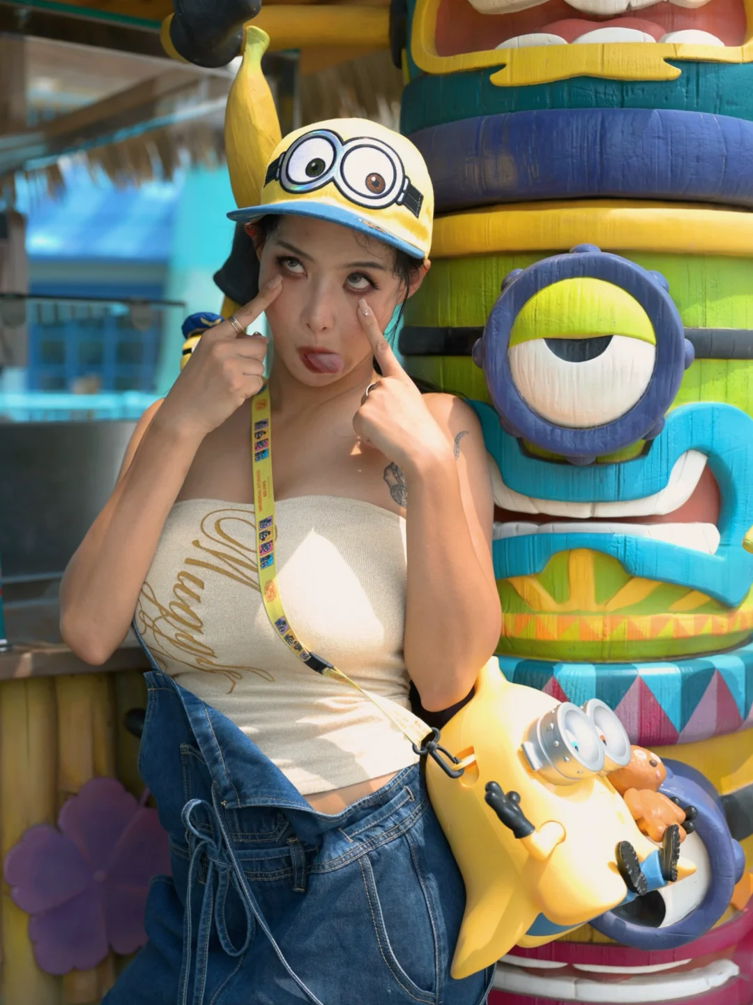 🕶️关于搭配-出片的话小黄人配色 黄 红 蓝都🉑~背带裤上的玩偶自己缝🪡的~