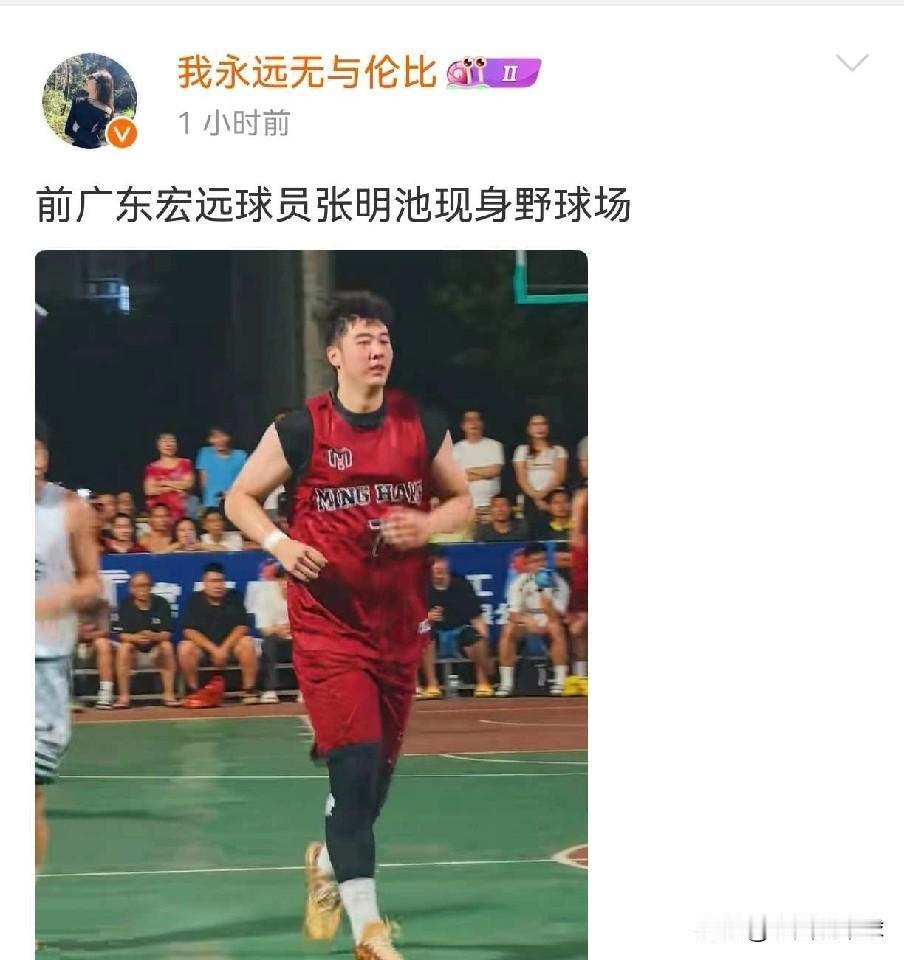 张明池这是图什么?自宣离队然后去打野球 今年七月份广东队内线新星张明池自宣将离开球队,还说自己没有加盟任何一支球队,但是近日辽宁媒体人我永远无与伦比透露,张明池出现在了野球场。 这是何必呢,张明池这波操作确实令人不解,他今年才22岁,身高2.13,体重110公斤,可以打中锋和大前锋,这么好的身体条件,不打职业联赛去打野球,哪怕他觉得广东队没有机会,转会去其他球队寻找机会也可以啊,2.13的大个子在CBA还是很稀缺的,去打野球真的就废了,以后想再进入CBA估计就难了。