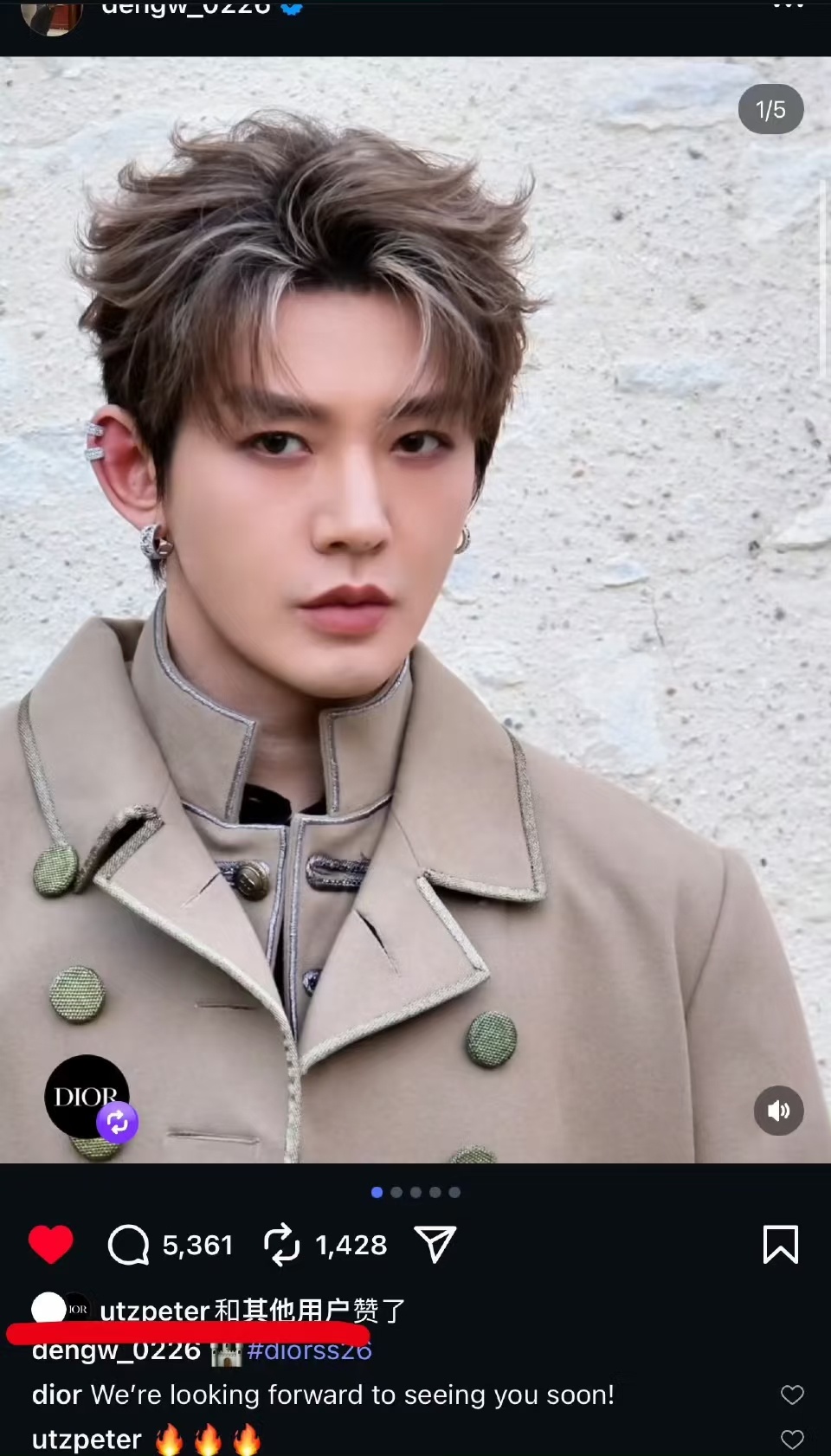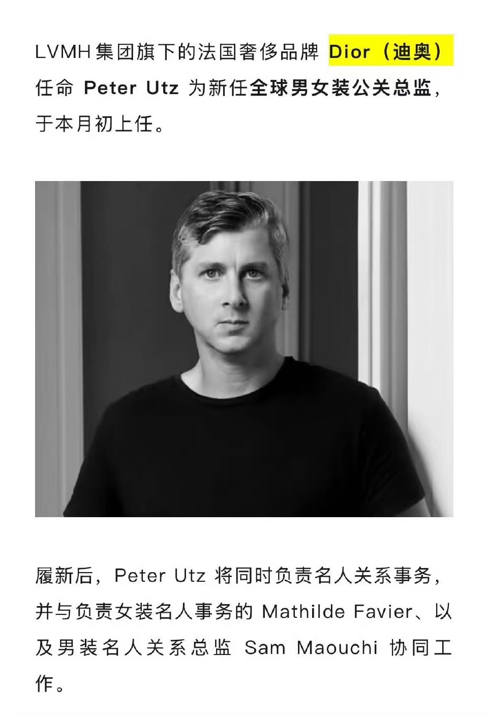 Dior全球公关总监Peter Utz关注和评论🔥🔥🔥