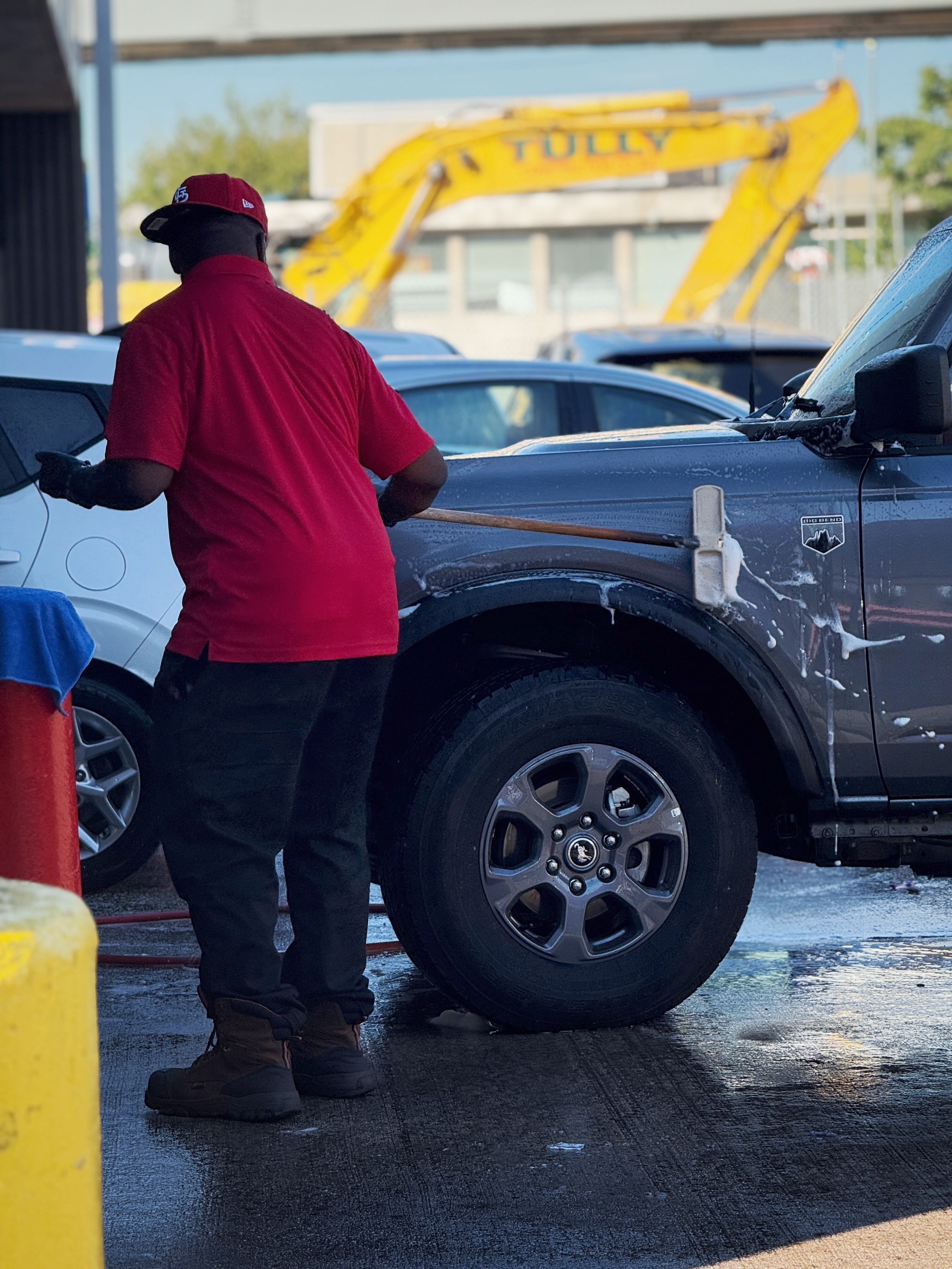 请AVIS小哥帮把车洗漂亮了,准备出发!第一次开福特Bronco,放假就该开玩具