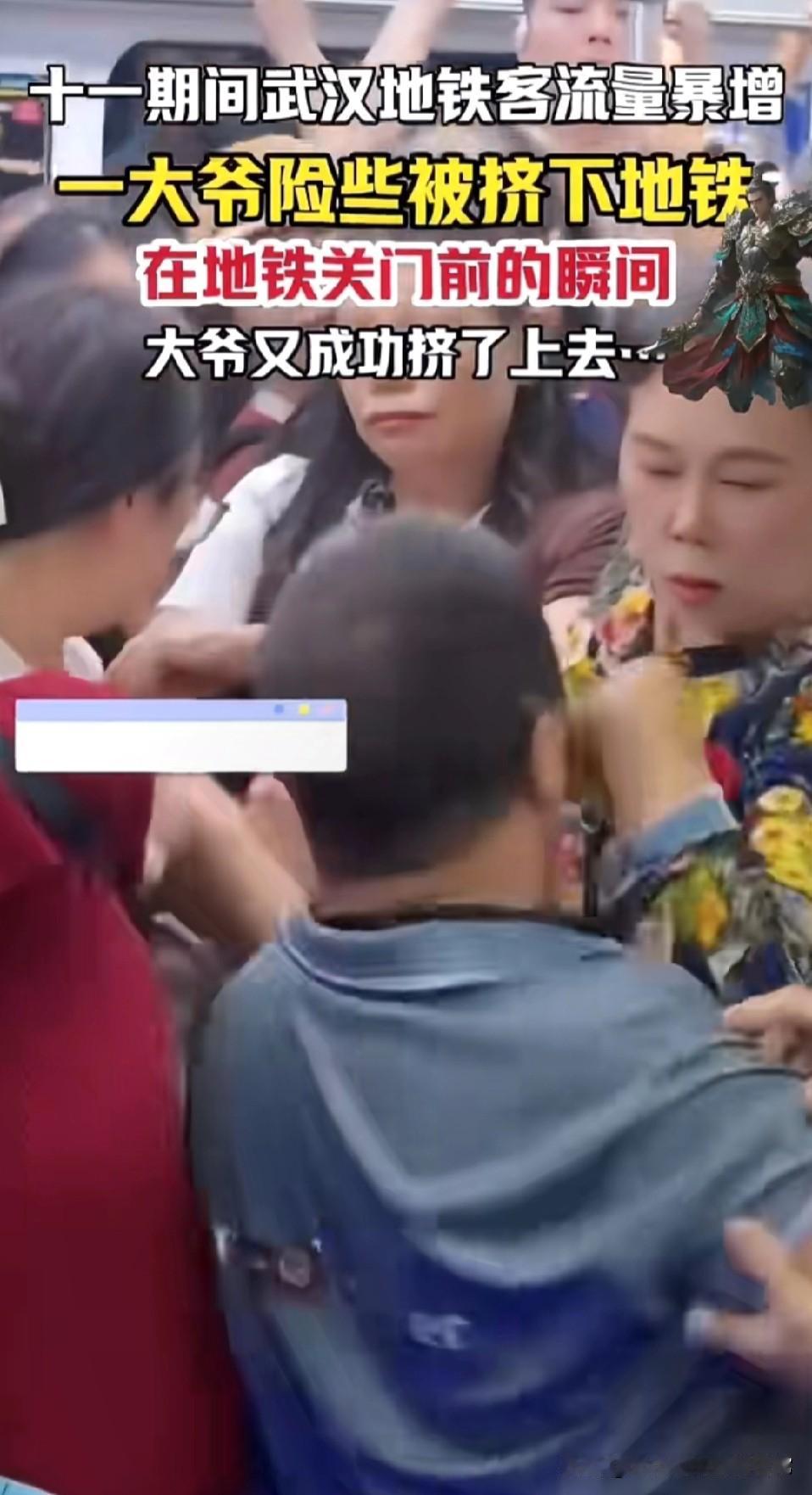 大爷差点被挤下车,关门瞬间又杀了回去! 十一的武汉地铁,挤到让人怀疑人生!一