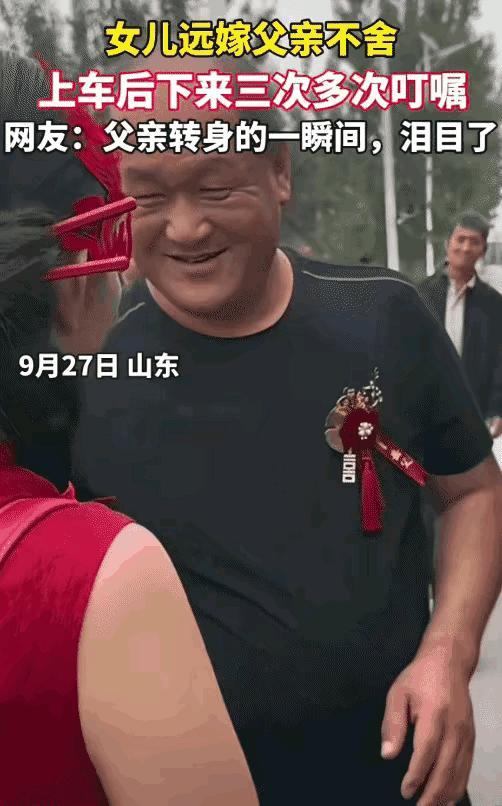 山东姑娘远嫁, 父亲参加完婚礼三次下车叮嘱的视频,看哭了无数网友。 有人觉得父