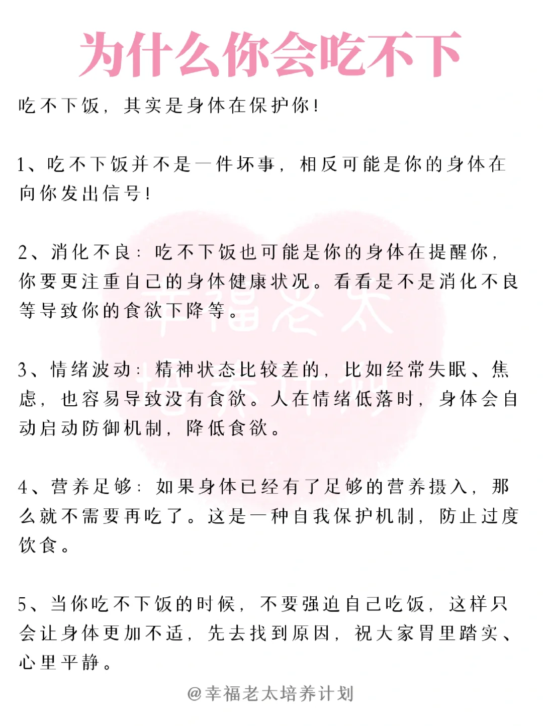 吃不下饭并不见得就是一件坏事,相反可能是身体再向你发出信号📶一定不要硬撑哦