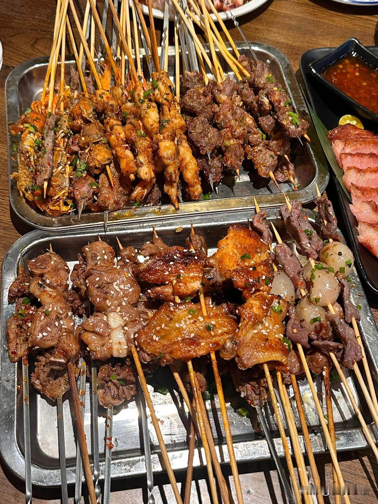长沙人排队疯抢的烧烤!下高铁直奔太值了 谁懂啊!刷到何老师推荐,我下高铁就冲串盟了! 省博逛累了来这,直接被香到跺脚! 椰子冰粥解腻又降温,湿辣牛肉辣得超够劲, 柠檬叶烤牛仔骨带着清香,糯年糕能拉出丝! 手工现串的紫苏五花肉,蜜甜的蜂蜜翅中, 还有鲜桂圆烤牛肉、海苔虾滑,别处根本吃不到! 口味虾、爆辣碎蛙随便点,木薯羹糖水超解辣。 环境好性价比还高,约会聚餐都合适, 来长沙的姐妹听我的,这店闭眼冲不踩雷! 美食