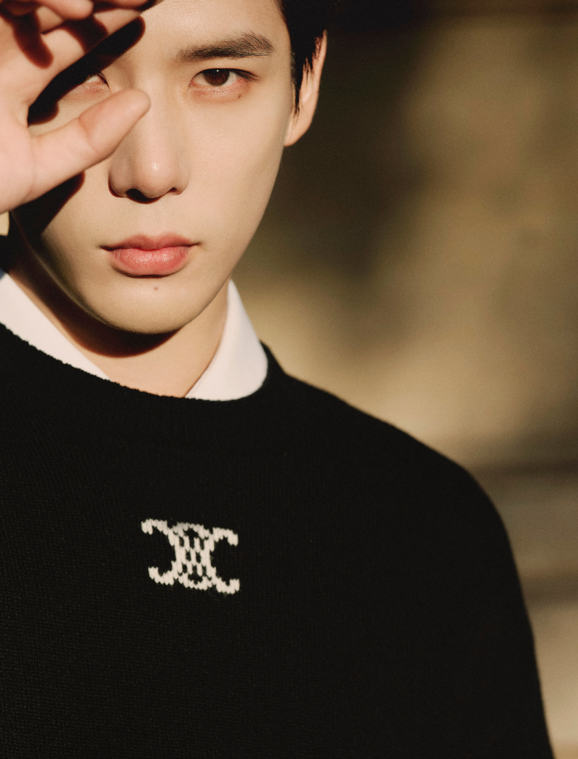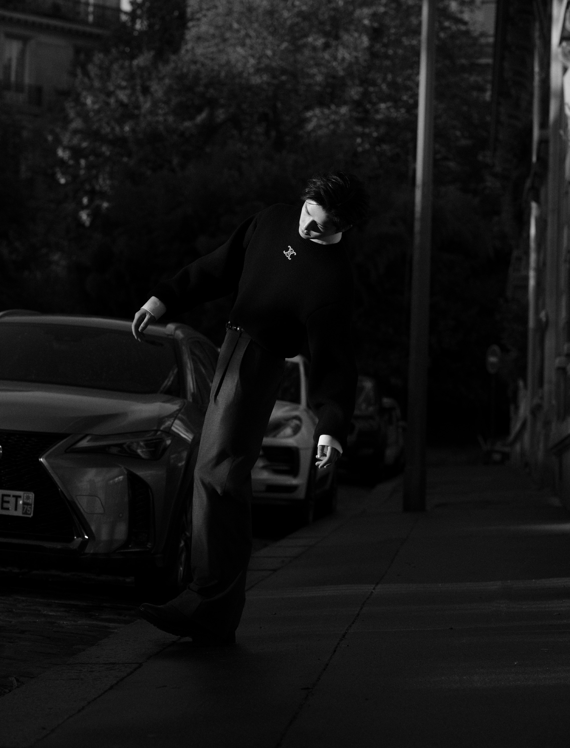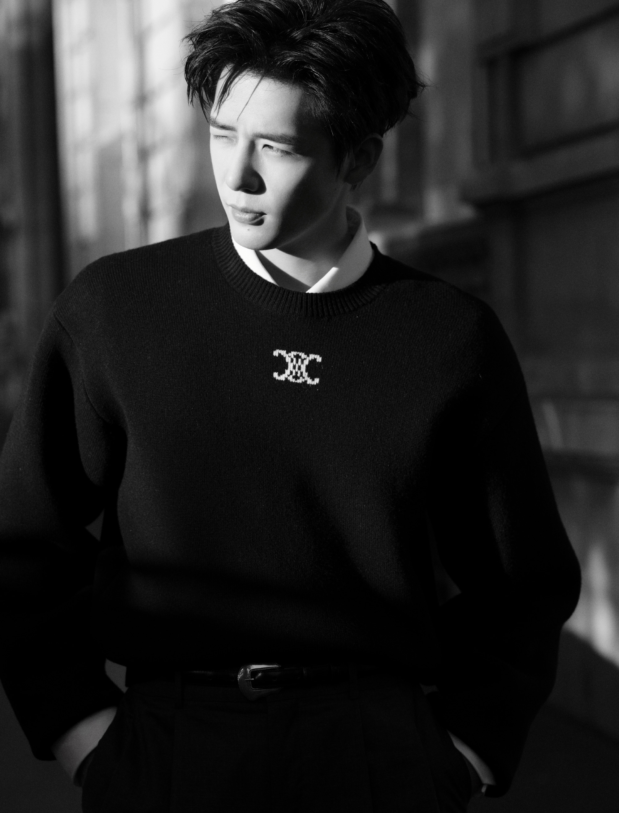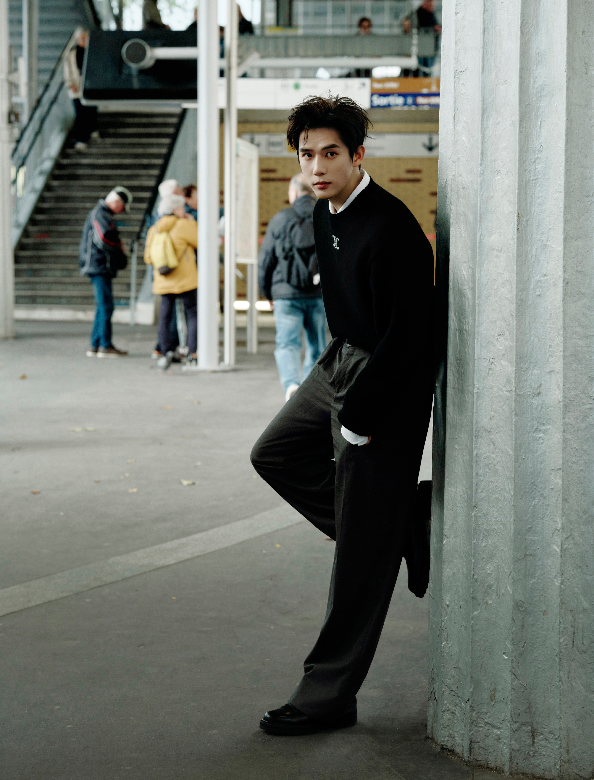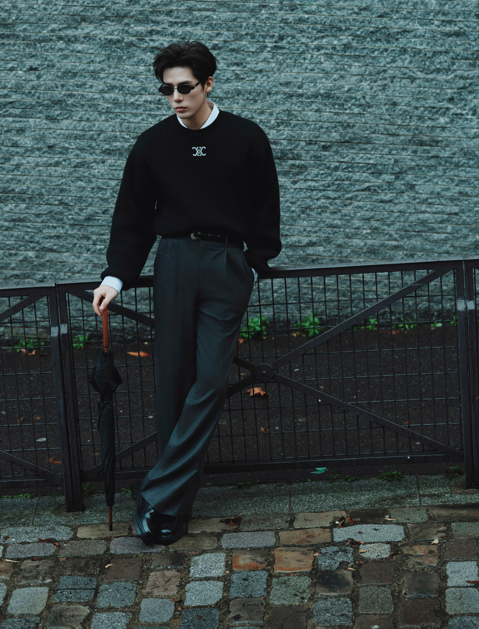 自身条件优越,穿基础款圆领黑色毛衣就帅得明明白白。