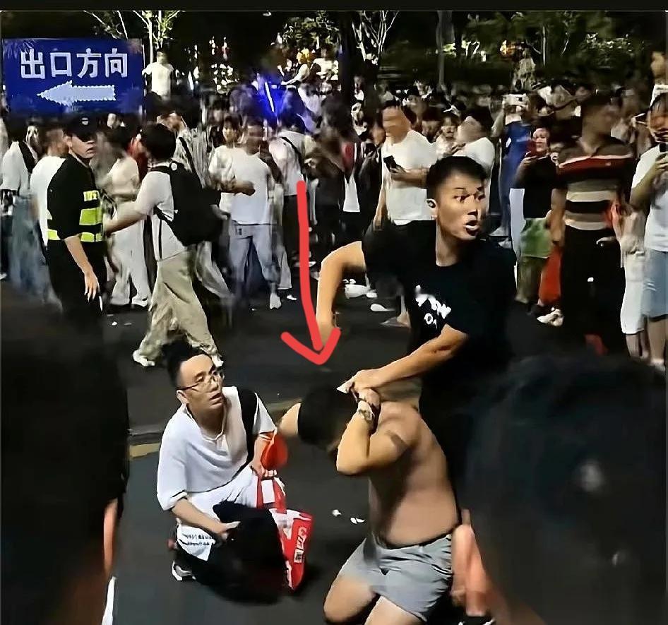 南昌这大哥真的火了,也真的惨了。 我崽呢?”喊成“我宰你!”, 国庆南昌烟花夜的一场闹剧,成了全网狂欢的笑料,却藏着一个父亲的委屈。当几十万游客把南昌话里焦急的“我崽呢?”听成凶狠的“我宰你!”,当纹身、光膀的外形撞上人群中的恐慌,一场“正义围殴”瞬间爆发——这位找儿子的父亲被摁倒在地,手里的扇子被当成凶器,差点引发踩踏。 更荒诞的是,他的儿子好端端地跟着姐夫,而他却成了全场唯一的受害者。这场乌龙,看似是方言造成的误会,实则是偏见与恐慌催生的暴力。 人们对“纹身大哥”的刻板印象,让一句方言呼救变成了“行凶预告”;人群中的集体恐慌,让“先动手为强”成了默认选择。没人愿意多问一句、多等一秒,就凭着主观臆断给人定罪。笑完之后,更多的是心酸:一个父亲的焦急,竟成了被围殴的理由;地域文化的差异,沦为全网调侃的谈资。