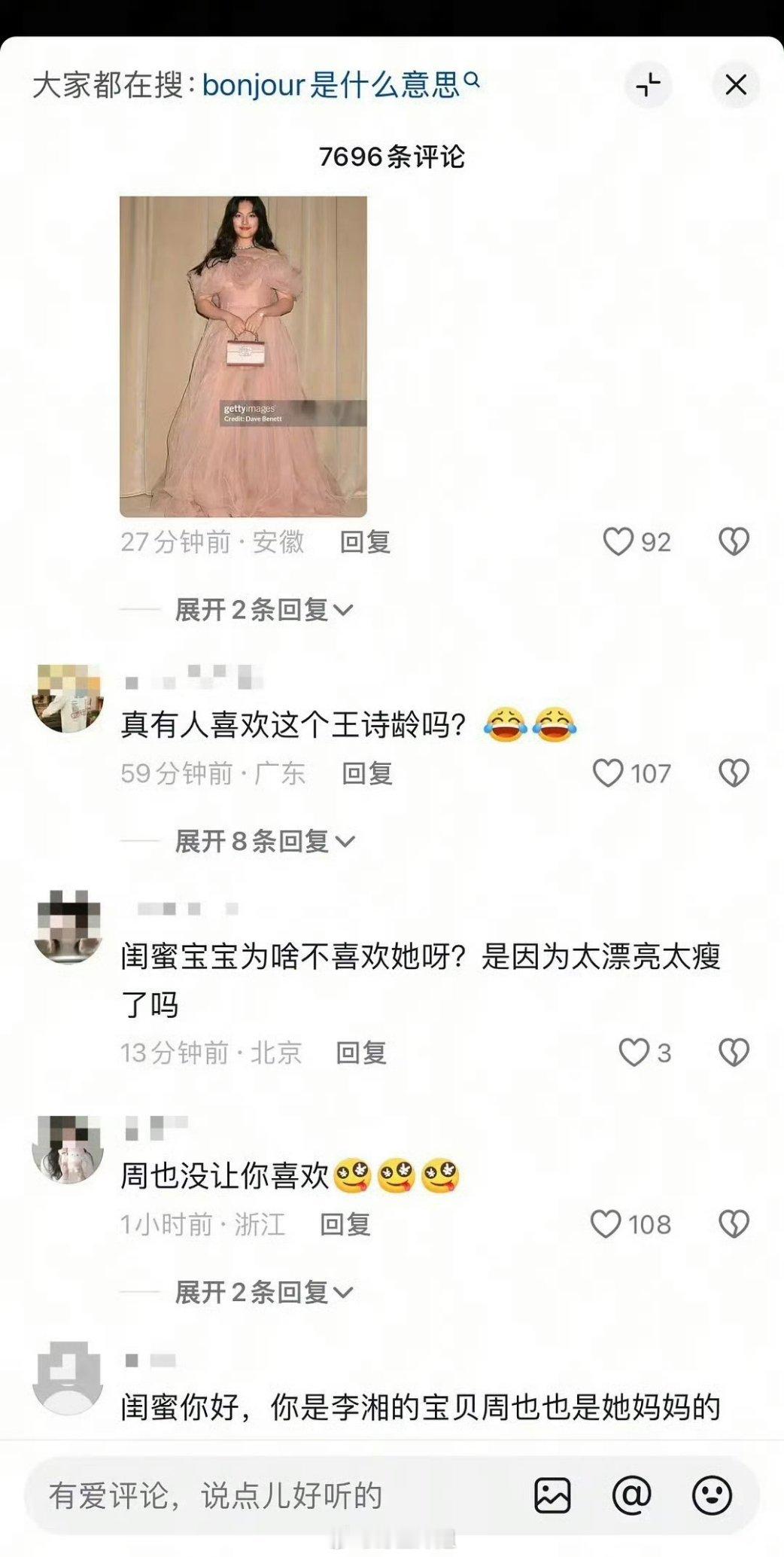 因为李湘发了不喜欢周也的live图,王诗龄的评论区被周也粉丝给冲了,虽然说喜欢谁是个人的自由,但公开发出来可就不太好了