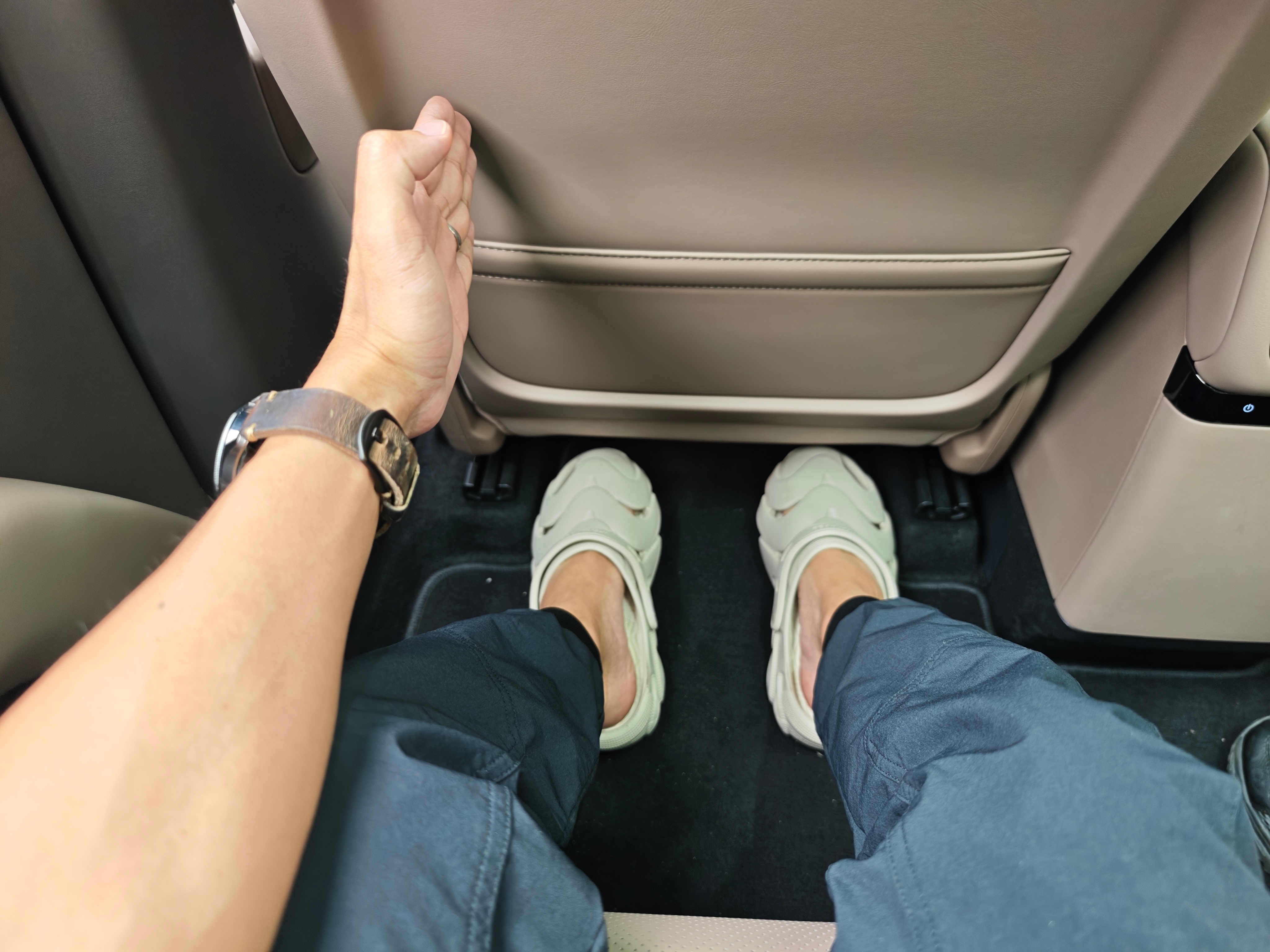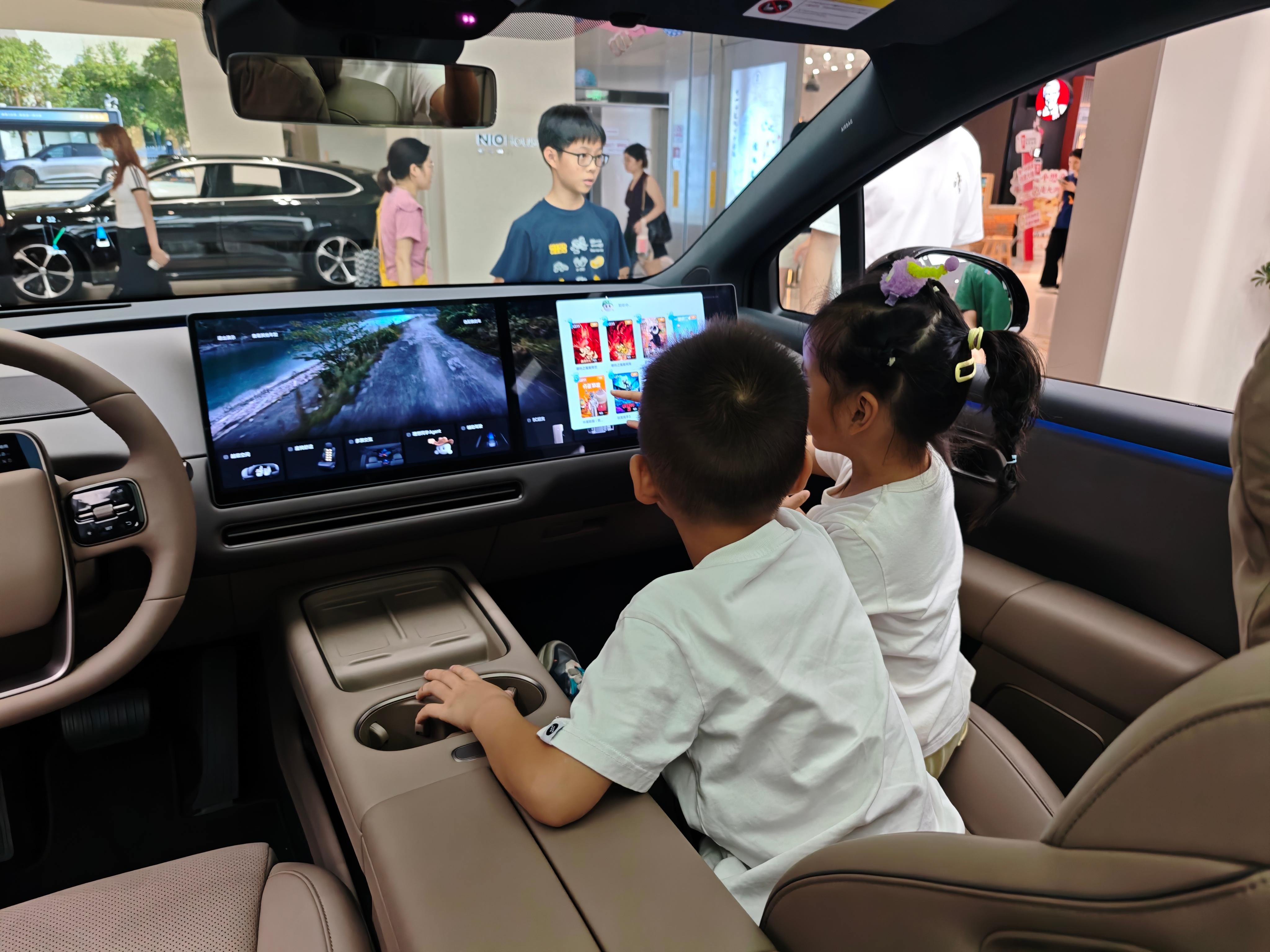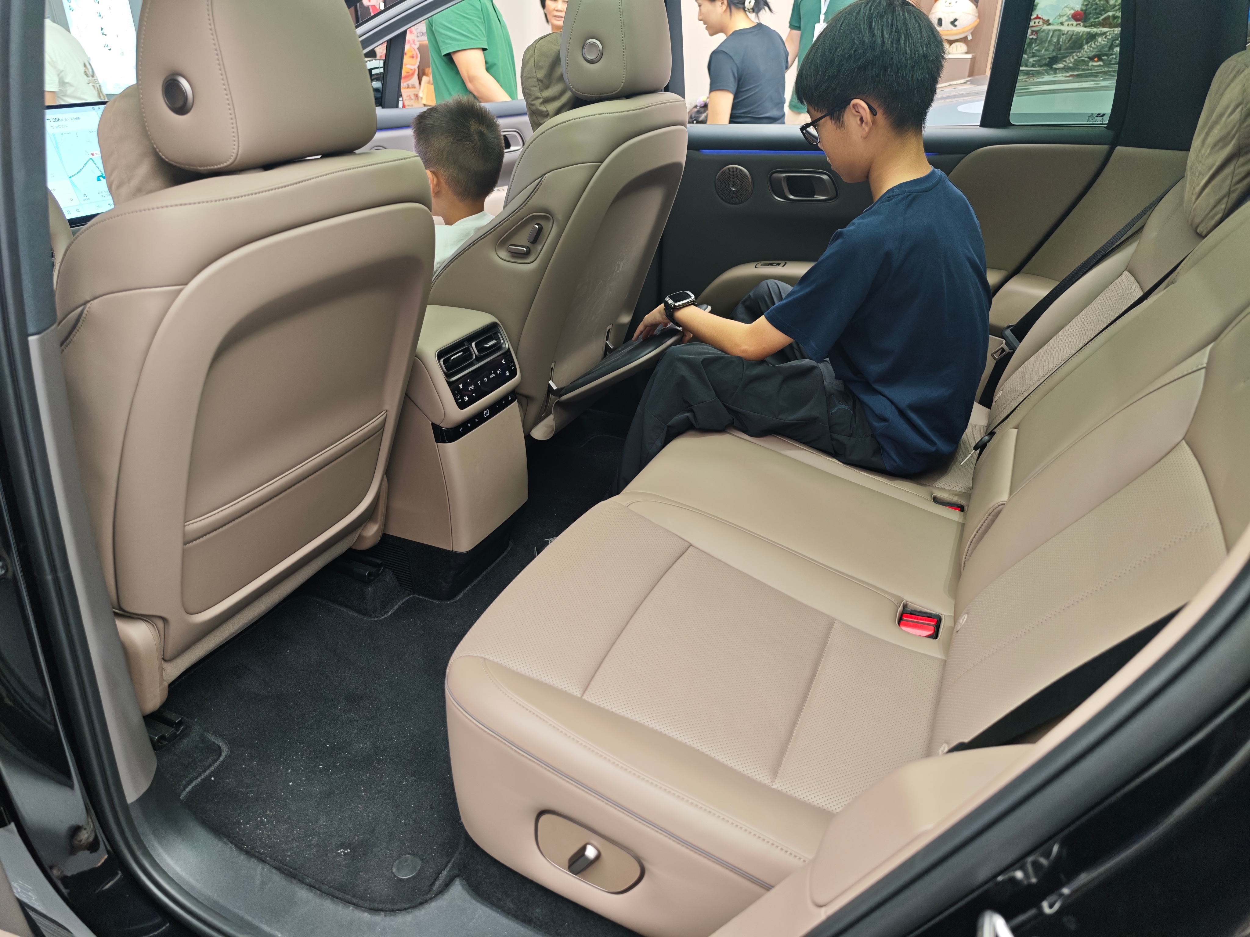 内饰质感也好,后排大、尾厢大,虽然展车没有装后排电视,但是副驾屏对大人小孩还是很有吸引力的。