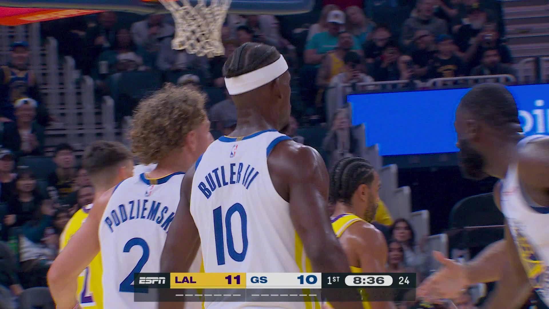 格林助攻巴特勒2+1!湖人vs勇士