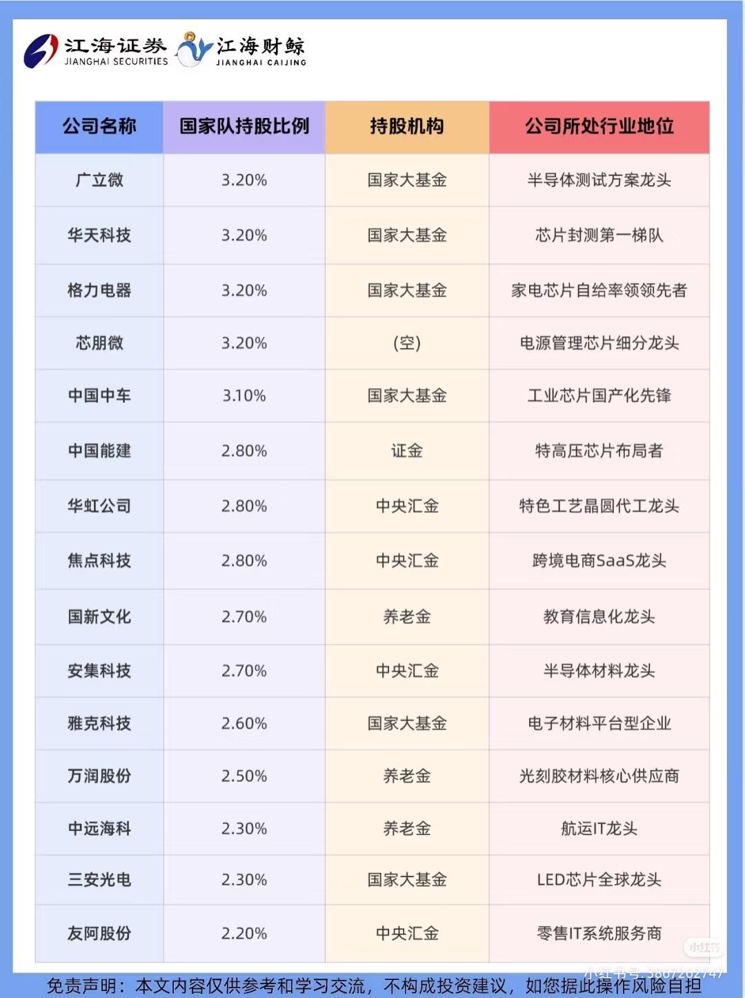 官方认可,国家队持仓的科技龙头名单曝光!(国家队重仓43公司) 名单上榜理由:主