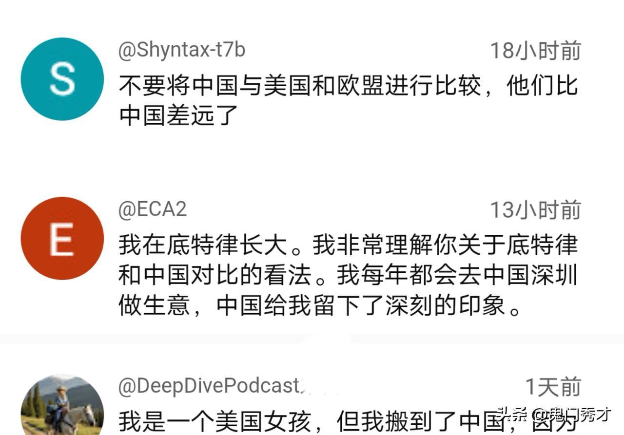 “简直不敢相信中国发展的这么好,要不来到这里,或许到现在还被蒙在鼓里”一位来自美国博主视频中表示。 近日,一位美博主把他国内的所见所闻和亲身感受,通过镜头分享给国外的网友。在视频中,对我国取得成就给予了非常高评价,从井然有序的秩序到基础设施、再到科技等,都给他留下了非常深刻印象。最后,该博主总结道:其他国家很难再跟上,并与其进竞争。 像这样的博主不在少数,从之前不了解和好奇,到现在变成了我国的粉丝,并向世界介绍中国,让其他老外有更为直现和深入了解。 视频发布后,吸引了不少国外网友目光,热议由此引发…