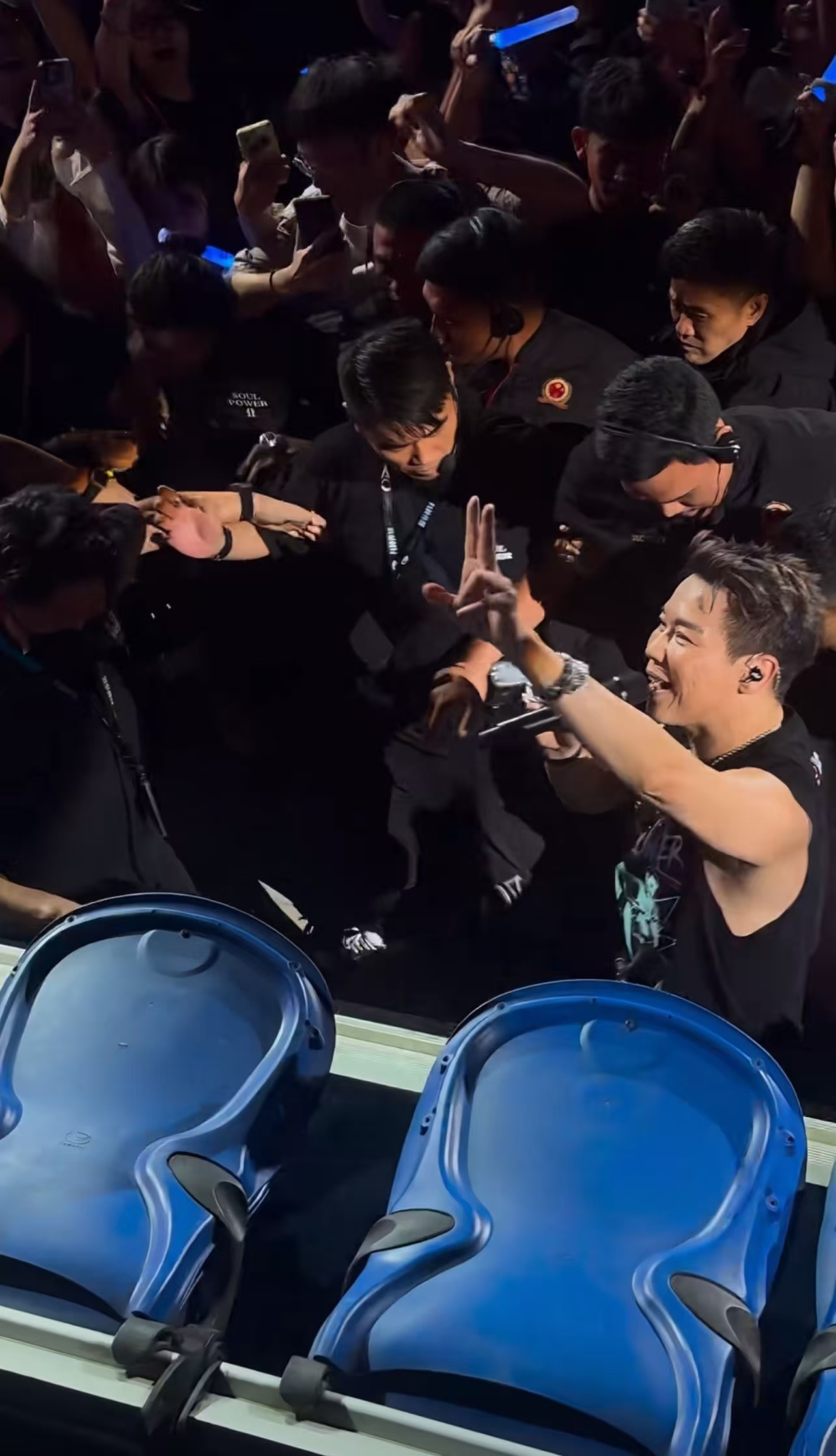 陶喆的保安快撑不住了吉隆坡演唱会上你跟歌迷的互动太疯狂啦,从台上跳下来就冲进人
