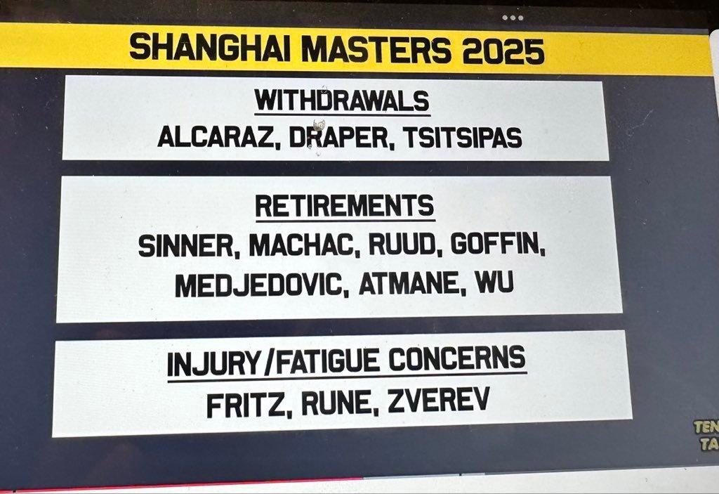 简直了,阿卡退赛,辛纳抽筋,计划有变,2025上海劳力士大师赛 现在的夺冠热门是:___________。