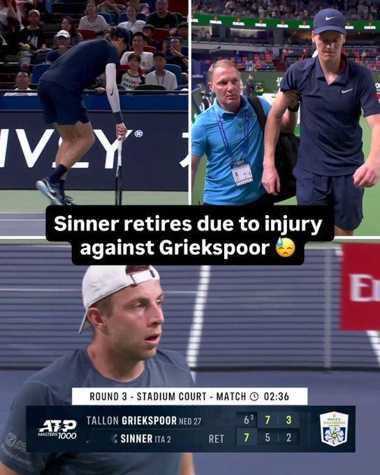 因为身体原因辛纳昨夜未能面对媒体,凌晨1点时,ATP给出的辛纳上海赛退赛 官方原因是抽筋。