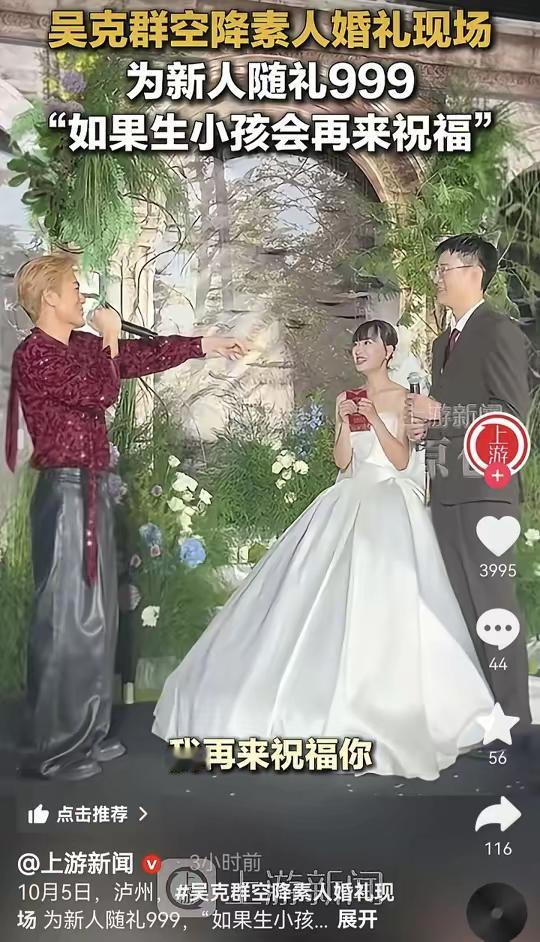 吴克群估计后悔了 他千不该万不该 不该突然间空降泸州新人婚礼!这下好了吧,一大堆