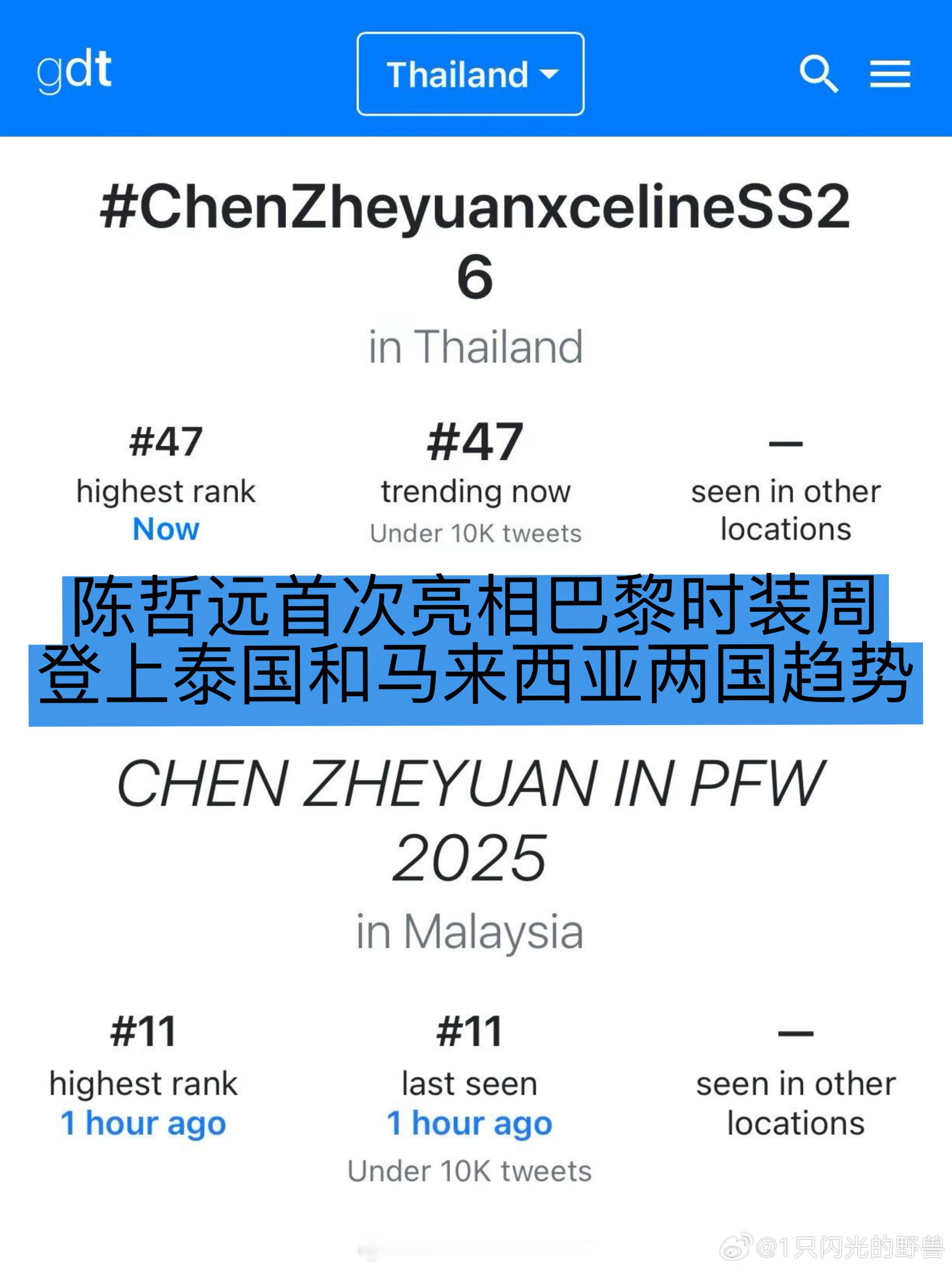 陈哲远首次巴黎看秀、登上马来西亚泰国2国趋势