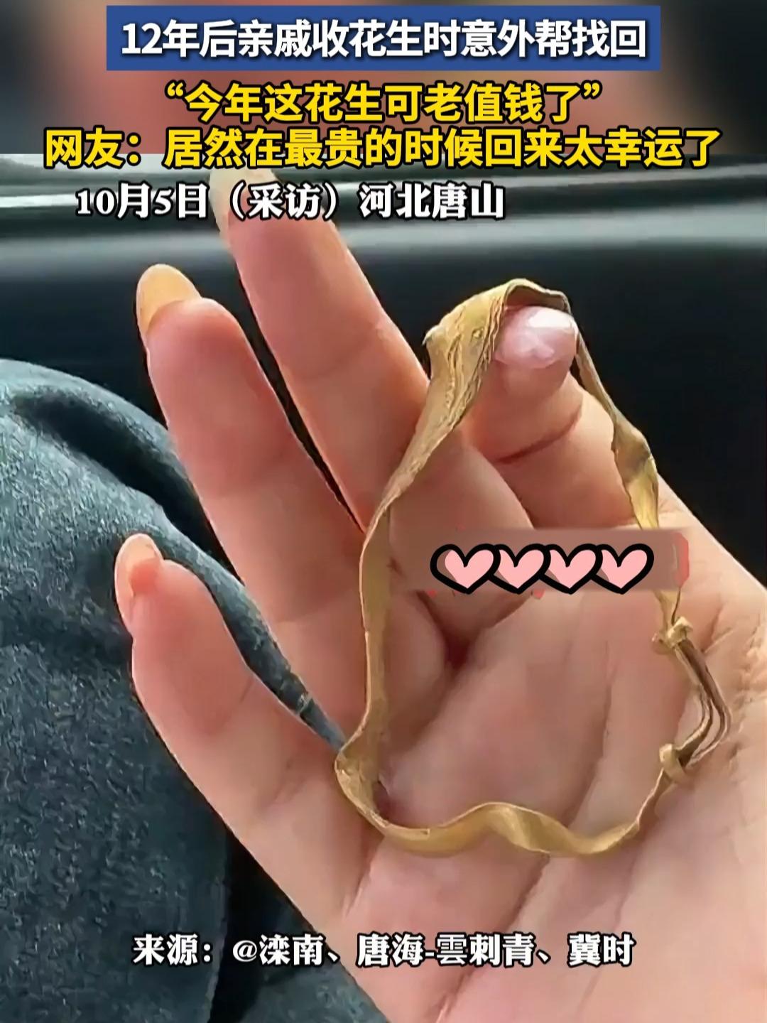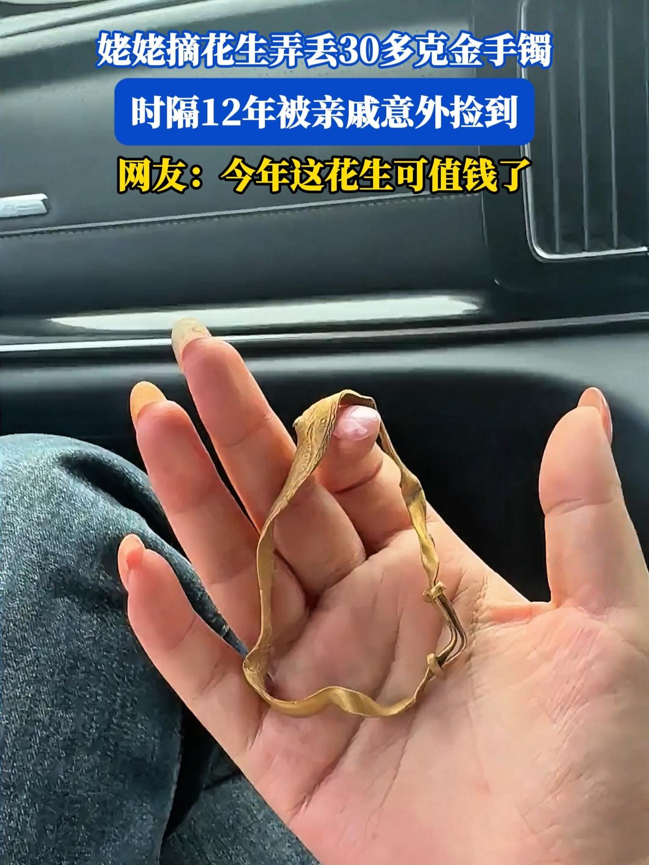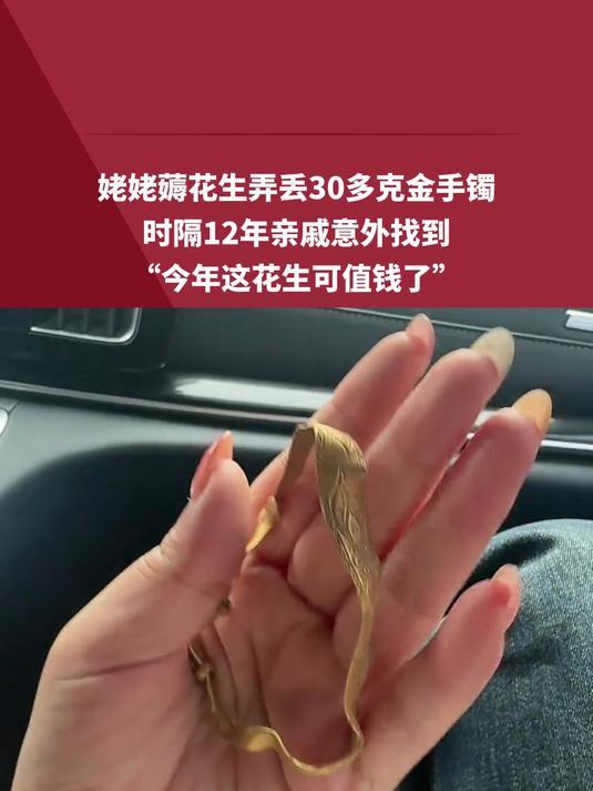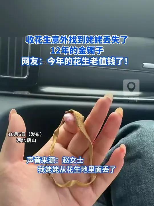秋天收花生时,竟找到了姥姥丢失12年的金镯子,这剧情比电视剧还精彩!12年,人生能有几个12年啊。当初姥姥丢了镯子,心里定是空落落的,这一丢便是漫长的12年,好似心里缺了一块。 收花生的亲戚弯着腰,用满是老茧的手在土里翻找。本是为了土里如宝石般的花生,却意外寻到了更耀眼的金镯子。这仿佛是命运开的一个温柔玩笑,告诉我们世间所有的失去,或许都在未来某一刻静静等待着与我们重逢。所以,生活中遭遇失去别灰心,说不定哪天希望就突然降临了。 手镯丢失 手镯掉了 奶奶镯子 母亲手镯