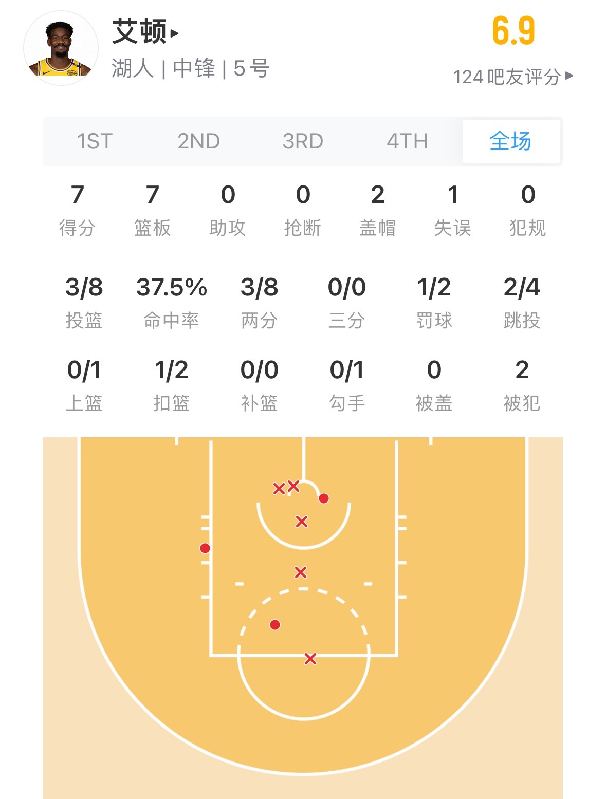 艾顿季前赛第二场,7分7板2盖帽。
