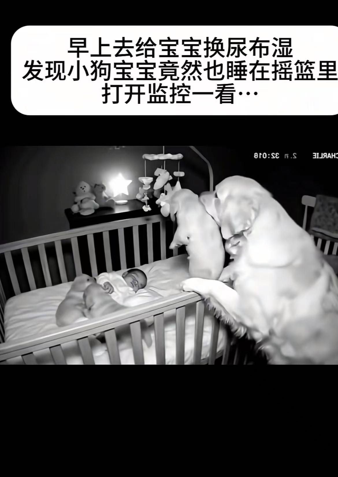 彻底解释不清楚了!女子早上起来给宝宝换尿不湿时,发现家里的小狗也睡在摇篮里!可是让她纳闷的是,小狗刚出生不久,摇篮的围栏这么高,小狗自己根本爬不进去!想到房间有监控,女子就去查看,这一看可把她震惊坏了! 王女士(化名)早上醒来的时候像往常一样一睁开眼就赶紧去到了旁边的婴儿床看看孩子等情况,然而等他迷迷糊糊的走到婴儿床旁边的时候,发现里面除了自己的孩子,还有三只狗宝宝。 这时王女士还以为自己看错了,谁知道她揉了揉眼睛,再去看的时候,里面还是有三只小狗,她瞬间就清醒了,觉得这三只小狗才刚出生没多久怎么可能会自己爬上这么高的婴儿床,很是纳闷。 于是王女士就立马去查看了监控,然后等她打开监控的时候,视频里面的画面让她很是震惊,这三只小狗的妈妈大金毛很温柔的一个一个的将它们掉进了婴儿床里面,让小狗陪着孩子睡觉。 而且大金毛将小狗放到里面之后还很不放心的在旁边观察了一会儿才离开,这时王女士想大金毛之所以会有这样的情况,可能是平时他经常看自己老是将睡着的孩子放到里面,所以才学会的。 见状,王女士立马就在网上下单了一个狗狗们专门睡觉的小摇篮,随后还将这一小段视频发布到了网上,不料瞬间就引起了广大网友的喜欢,很多网友在下面评论留言。 一些网友在下面评论调侃说,大鸡毛可能觉得王女士的孩子每天都能睡到婴儿床里面,为了公平起见,所以也想让自己的“小毛孩”也睡到里面。 还有一些网友在上面说,可能大金毛是通过这一行为来嘲笑他的主人王女士,让王女士看一看他自己一下子就能生三只狗宝宝。 不管怎么样,通过通过这件事情,让我们感受到了母爱的伟大,身为母亲的他们总喜欢将好的东西都留给自己的孩子,所以无论是动物还是人类,爱的本质都是一样的。 无论是人类母亲的牵挂,还是动物母亲的守护,那颗藏在心底的母爱本就是一脉相通的。那么对于这件事情,你还有什么想说的呢?