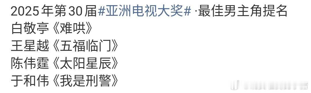 白敬亭王星越陈伟霆亚洲电视大奖最佳男主提名