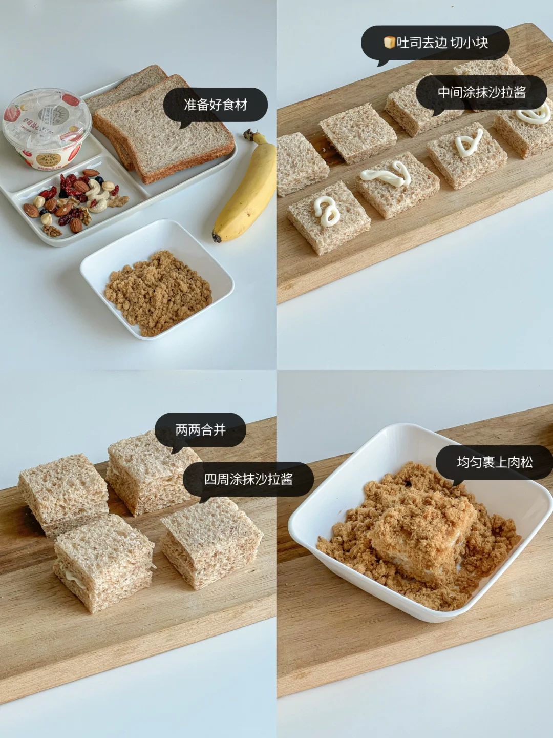 快手早餐🍴全麦吐司版肉松小贝🍞水果酸奶碗
