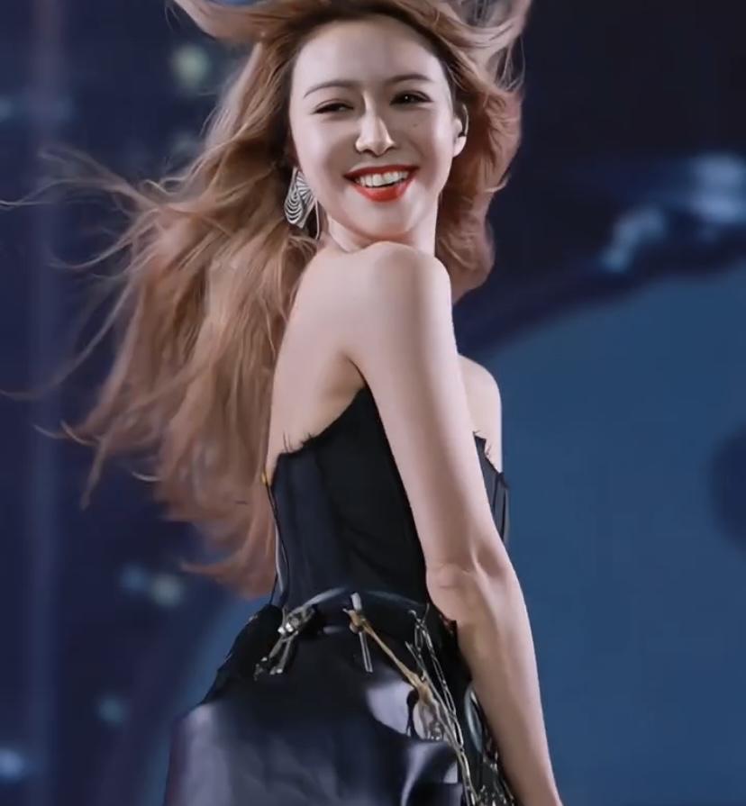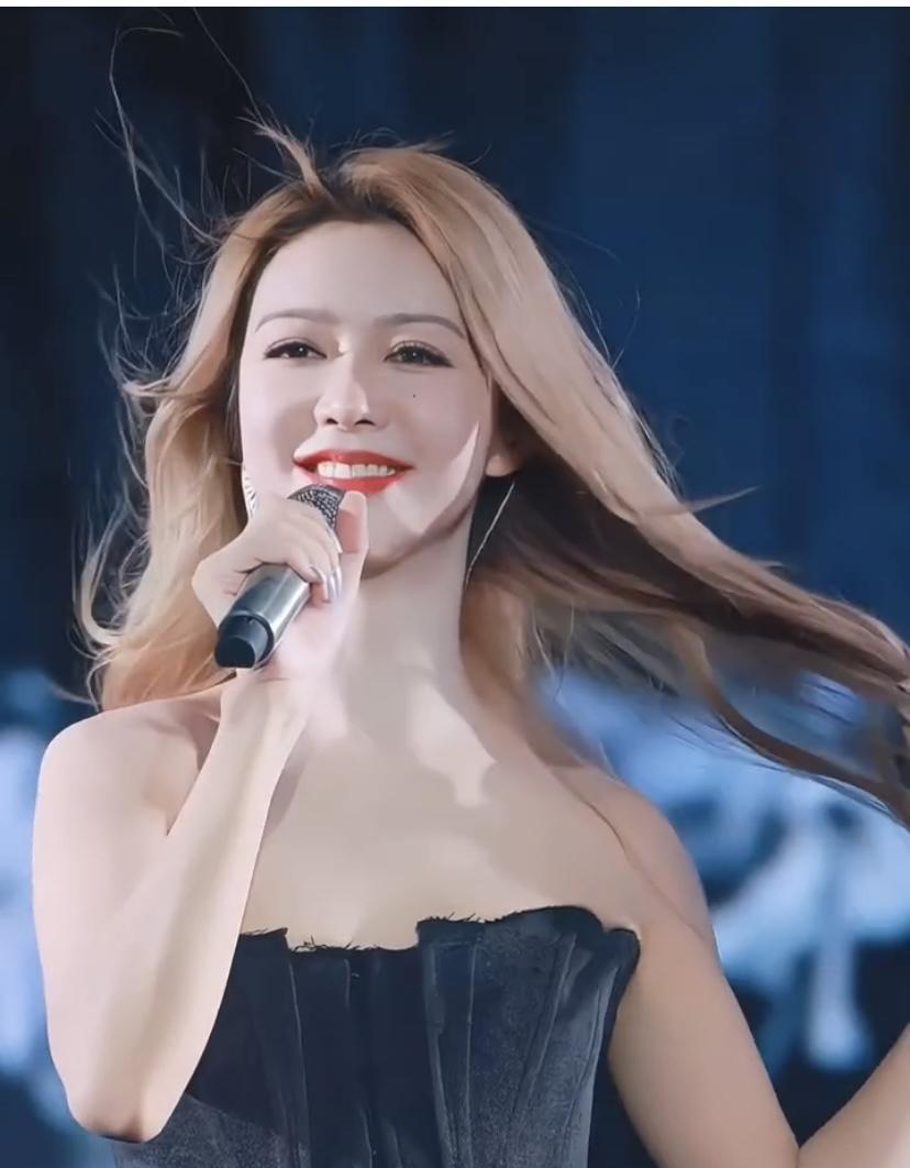 薛凯琪 广州演唱会真是看点十足,连她的头发都来“抢镜”,飘逸得不像话。 想当年,2004年她首张专辑冲进香港乐坛,唱片销量很快破两万五千张,甜美的长相和温润的嗓音圈粉无数。不过到了内地,事业一直不温不火。后来她在演唱会上玩起了“衣着艺术”,渔网袜、深V、黑丝等造型不断,每次都自带热搜。 这次广州演唱会,她一身亮片连体装,长筒皮靴配黑丝,深V开到新高度,灯光一打格外吸睛。估计观众们看演出时,既要被歌声陶醉,又要被她的造型和飘逸的头发吸引,这演唱会体验真是丰富又难忘。