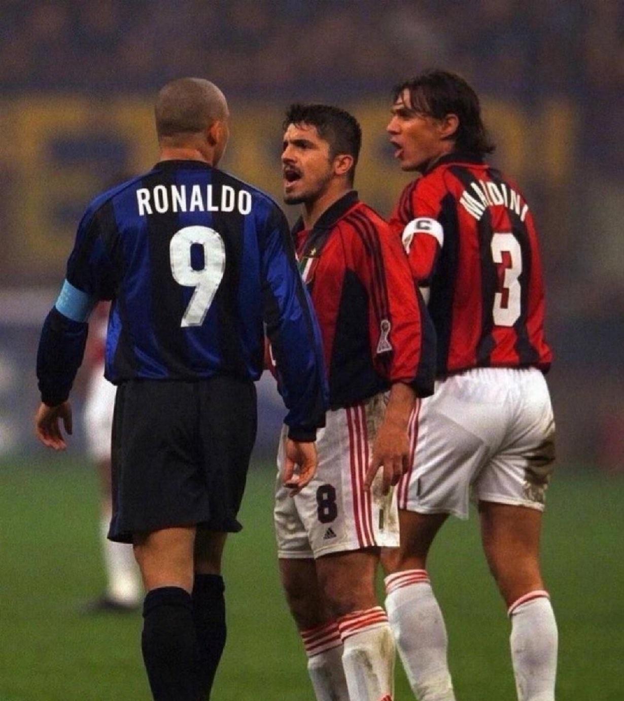 罗纳尔多:大胡子,我就正常带球,谁知道你这么慢,我还没加速呢! 马尔蒂尼:吹牛逼