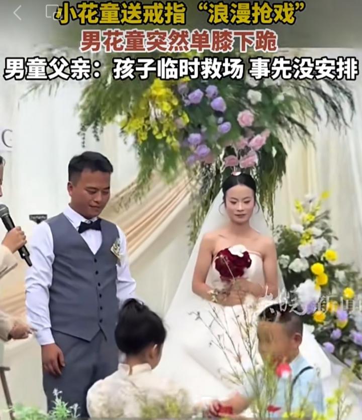 婚礼上小孩突然单膝下跪,这画面简直太逗了!近日在贵州金沙一场婚礼上,本来安排的小花童上场前胆怯了,旁边一个小男孩主动请缨。他拿着戒指上场后单膝下跪,给新郎“打个样”。 还有的婚礼上,司仪引导新郎单膝下跪时,花童突然抢先一步跪下,瞬间全场笑声爆棚。宾客们纷纷拿起手机记录这欢乐时刻。这些意外举动打破了婚礼传统仪式的严肃感,展现出孩童的天真无邪。谁说婚礼就得一本正经,这种意外反而增添了独特韵味,让婚礼更难忘,也提醒着我们,幸福无需刻意设计,自然流露的真情才最打动人。
