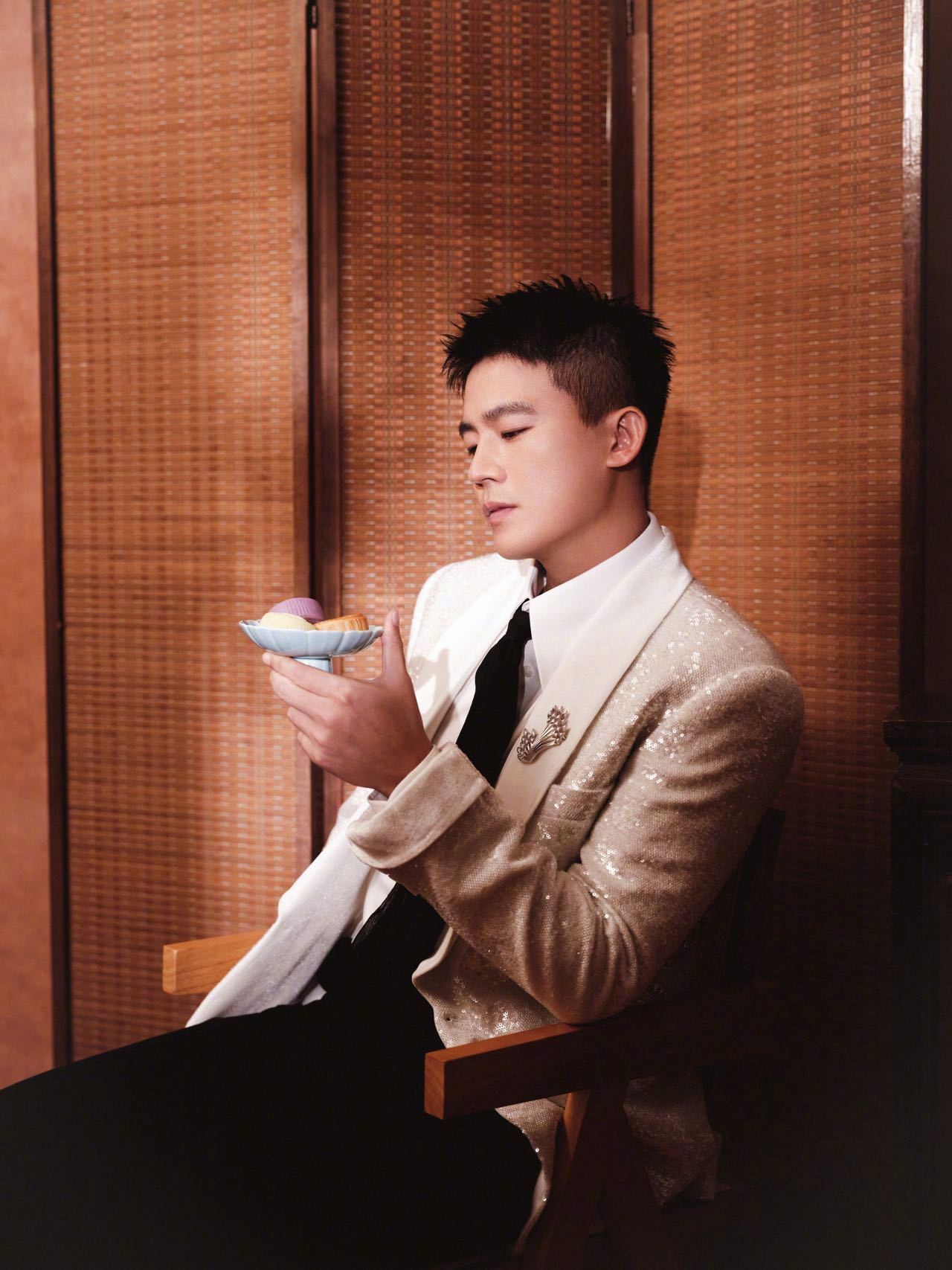 欧豪鳞片西装一闪一闪又一闪欧豪的鳞片西装在舞台上闪闪发光,仿佛自带星光!与