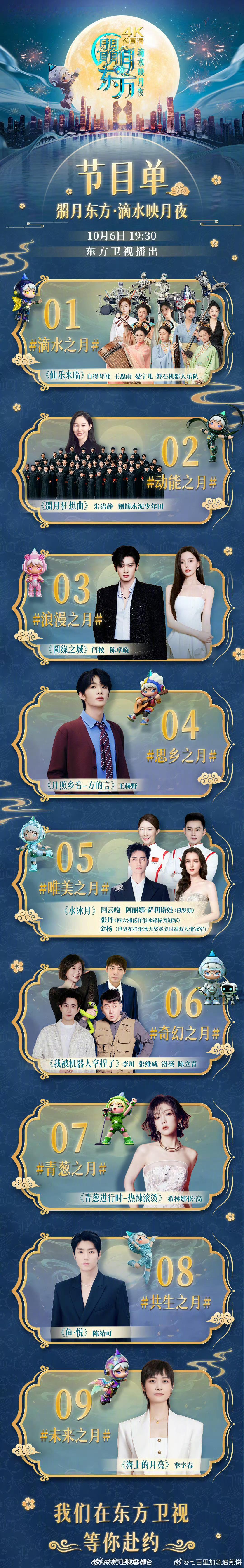 央视、湖南卫视、东方卫视的中秋晚会节目单:
