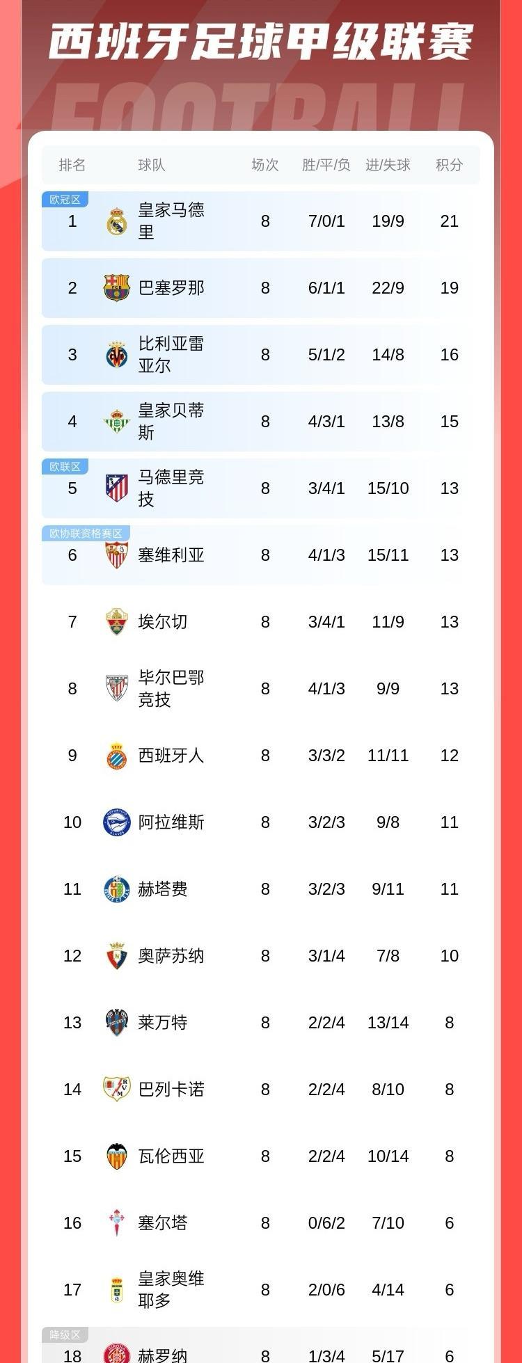五大联赛第七周综述 国家队比赛日前的最后一轮联赛,各支强队的表现都差强人意,巴萨惨败、利物浦被绝杀、大巴黎被绝平,唯有德甲班霸全胜领跑积分榜,来看下具体赛果和排名! 英超红蓝大战中,蓝军2-1绝杀红军送给利物浦联赛第二败,阿森纳2-0战胜铁锤帮登顶榜首,水晶宫客场1-2被埃弗顿补时绝杀遭遇赛季首败,至此英超已无不败球队! 西甲皇家马德里3-1战胜比利亚雷亚尔以两分优势再度夺回积分榜榜首,巴萨客场1-4惨败塞维利亚遭遇赛季首败,马竞客场1-1被塞尔塔逼平,埃尔切1-3不敌阿拉维斯后西甲也无不败球队! 意甲本轮焦点战AC米兰客场0-0战平尤文图斯、排名掉至第三,罗马2-1战胜佛罗伦萨后排名第二,那不勒斯i登顶榜首,国米排名第四! 德甲班霸拜仁慕尼黑是五大联赛目前唯一一支保持全胜的球队,六连胜以四分优势领跑积分榜,大黄蜂同样以四胜两平的不败战绩排名第二! 法甲大巴黎1-1被里尔绝平依旧排名第一,不过领先优势只有一分了,马赛、斯特拉斯堡、里昂三队同分排名二、三、四名!