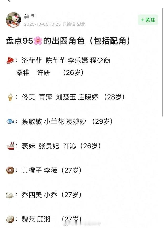 网友统计的95花出圈角色!符合体感吗[思考]
