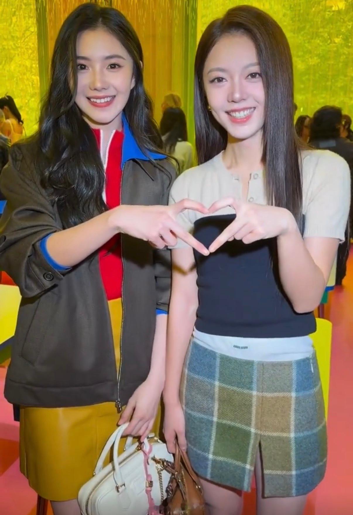 刘浩存赵今麦巴黎秀场同框比心路透,来看看状态怎么样?[并不简单]MiuMiu巴黎