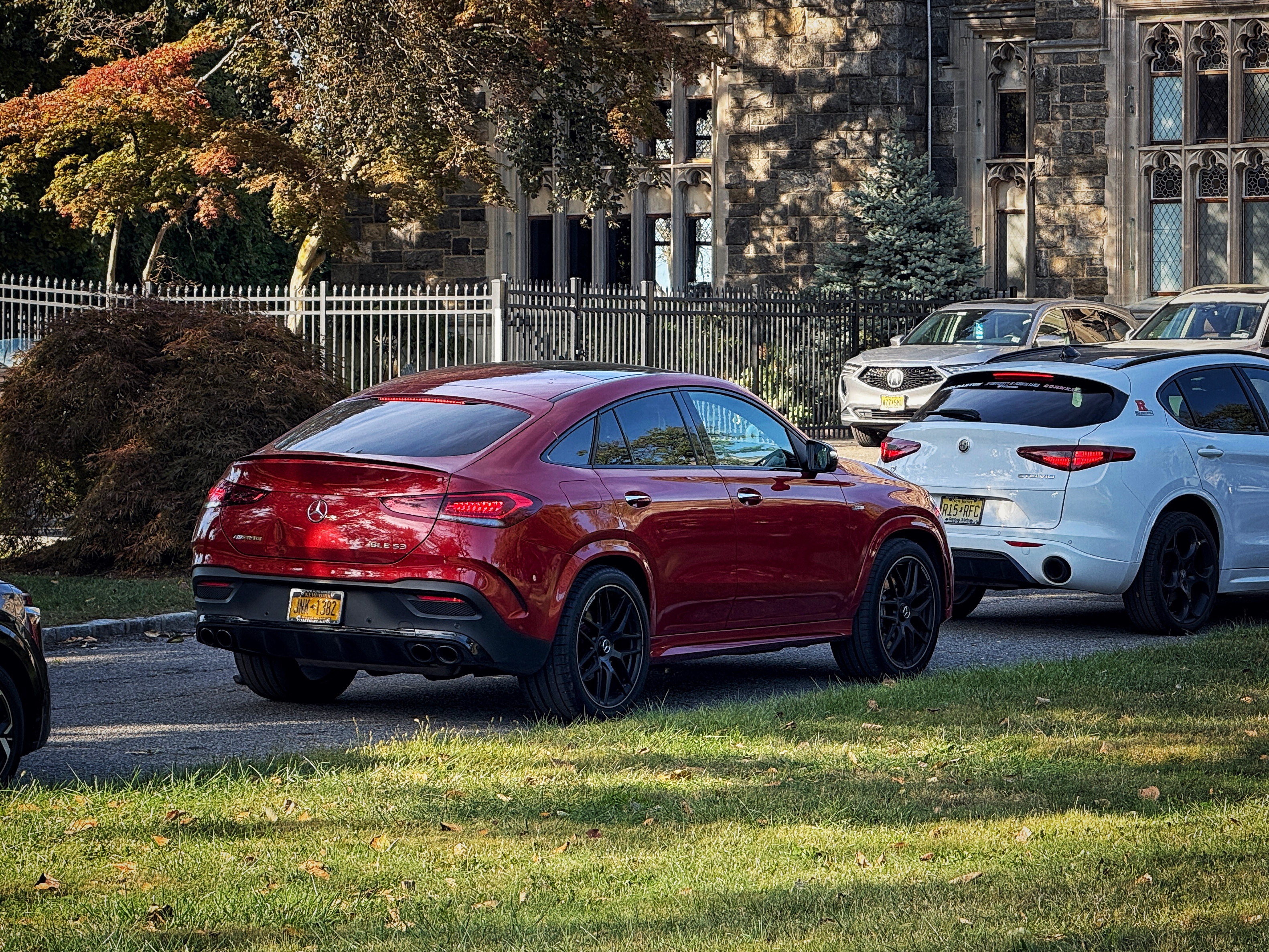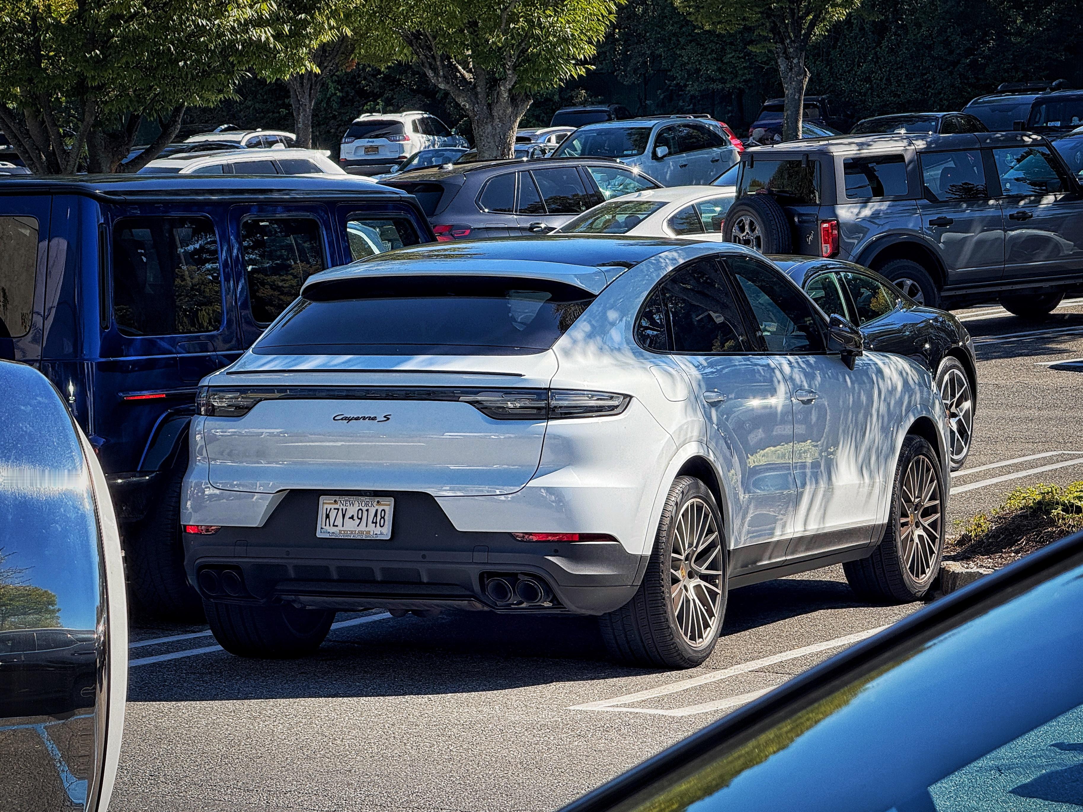很长一段时间我不理解,到底是谁会买这种所谓轿跑型SUV?直到这次来纽约州,发现遍地都是GLC/GLE Coupe,X4/X6,卡宴Coupe。这几款轿跑版和标准版的比例肉眼判断能达到1:1,甚至轿跑出现率更高!这其中还能有一半比例是高配起步,尤其是奔驰,就是43/53/63的比例比标准版还多,真是非常不一样的用车理念!