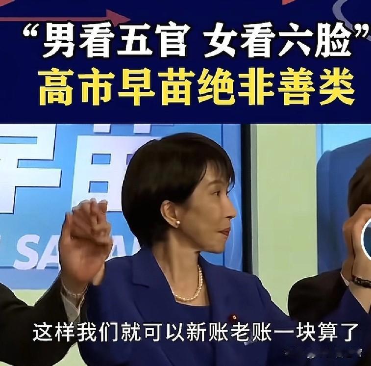 男看五官,女看六相,这个女人看第一眼就觉得阴森森的可怕,看看她劣迹斑斑,把日本侵华战争说成是“自卫行动”,否认南京大屠杀和慰安妇,人们禁不住感叹:果然是相由心生啊! 高市早苗备受网友非议,所有的愤怒都源自她“反华辱华”行为,对于这样的人,我们当然不会原谅,更谈不上喜欢。 但是她再狠也没什么了不起的,希望她有种再狠一点,狠到新账旧账一起算! 大家说,可好?