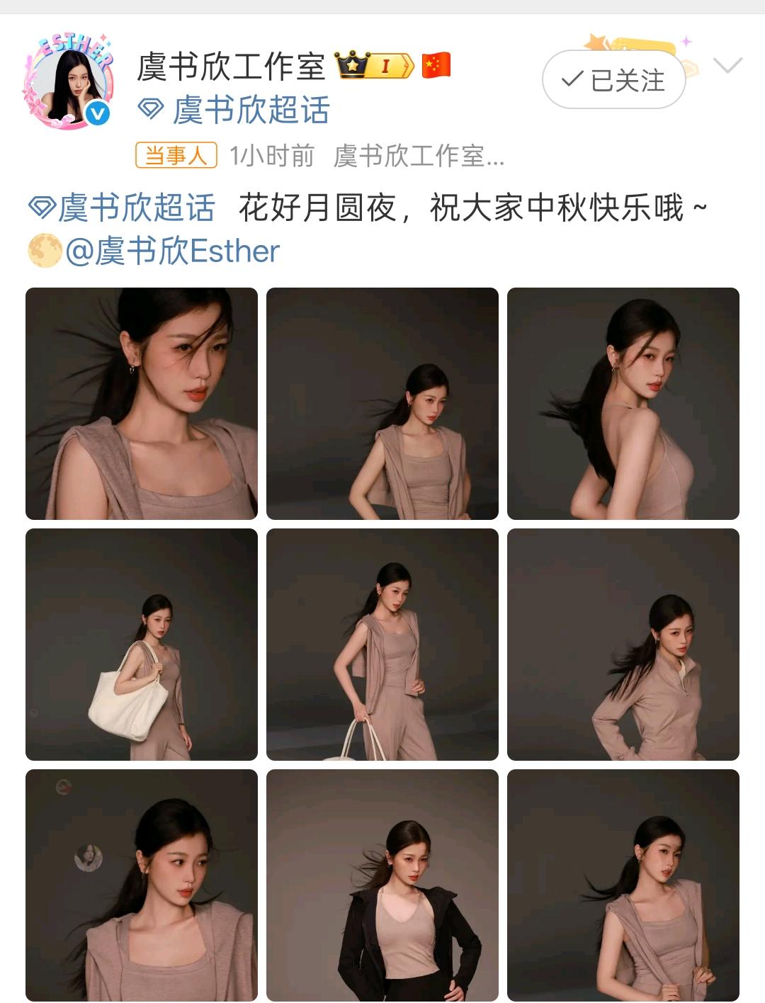 不是……我没明白虞书欣这个热搜第一原因是什么? 虞书欣也没发什么呀!只是中秋这条发了一个九宫格,并配文:花好月圆夜,祝大家中秋快乐~ 这还是工作室发布的,而不是她个人的社交账号。 然后就莫名其妙的上了热搜榜第一,所以到底是为什么呢?