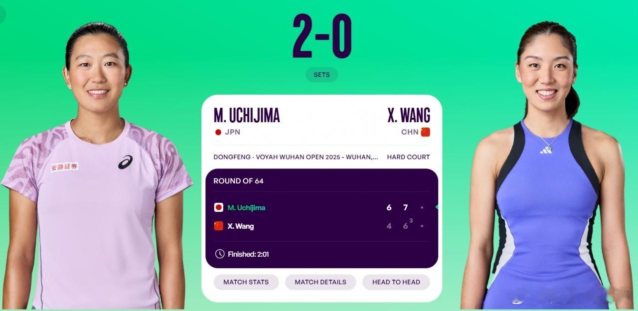 2025武汉网球公开赛女单首轮,中国选手王欣瑜迎战资格赛晋级的日本选手内岛萌夏。最终经过两盘较量,王欣瑜0-2负于内岛萌夏。