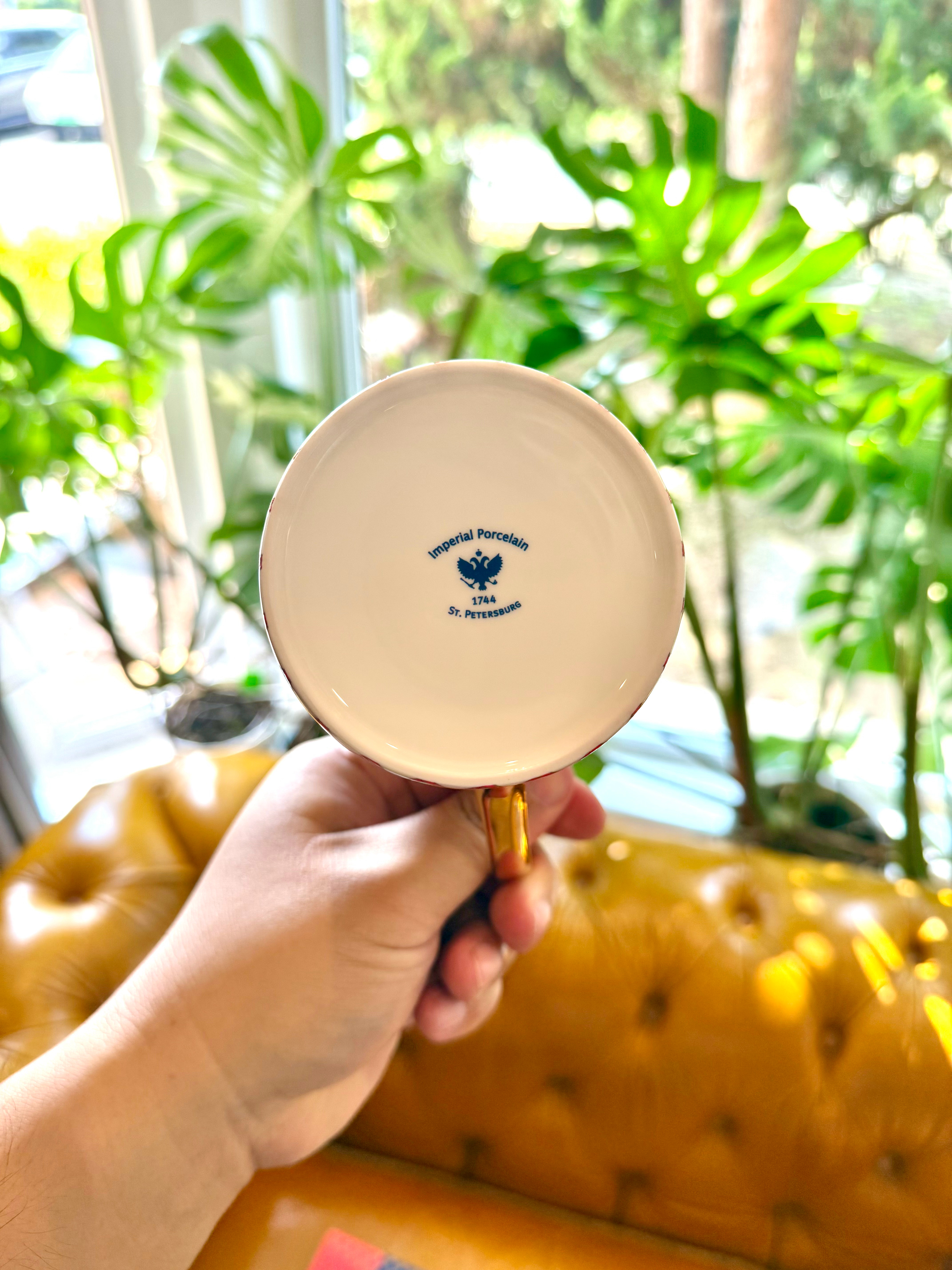 祝大家中秋节快乐!师兄突然发现一对价值428元的俄皇陶瓷咖啡杯不知道怎么处理。老圣彼得堡工艺,那叫一个地道。
