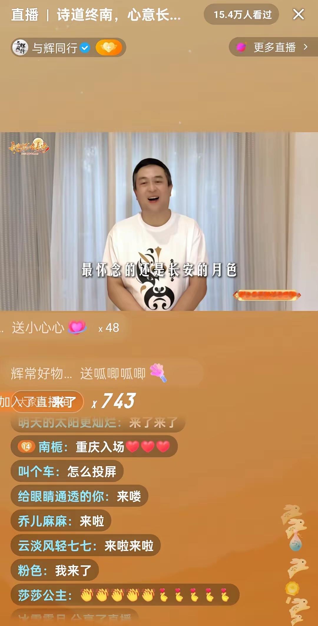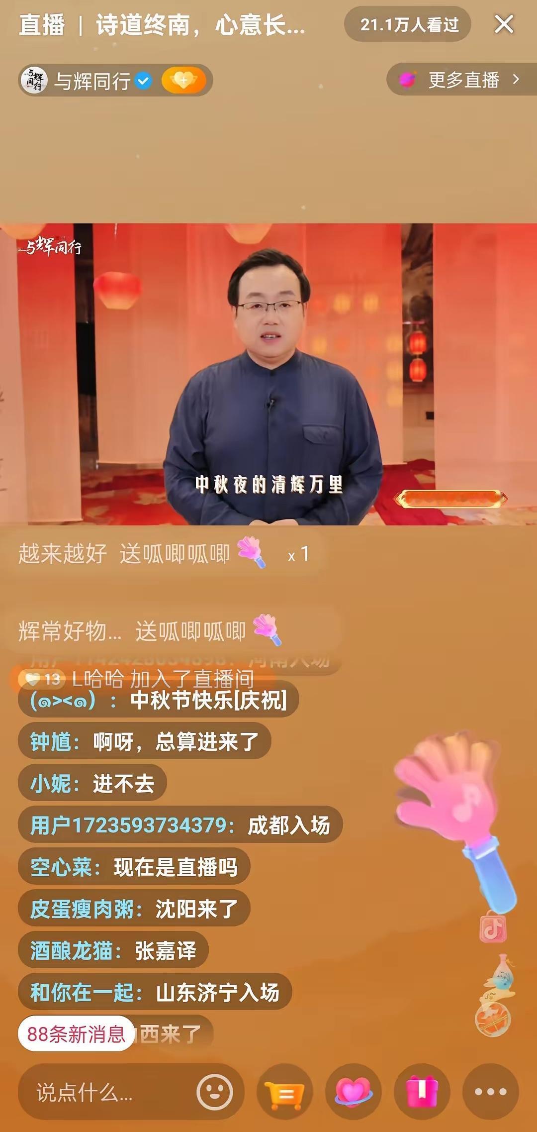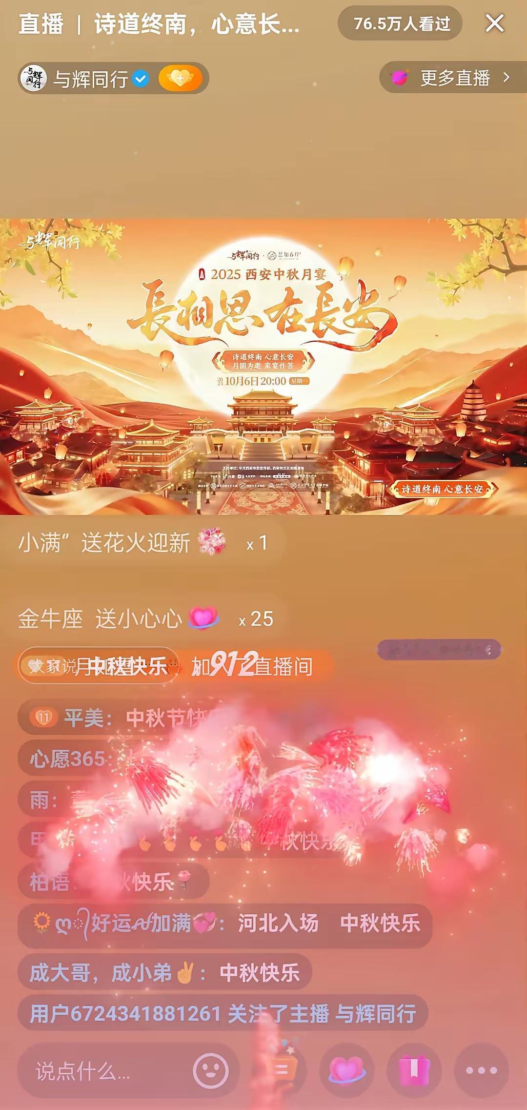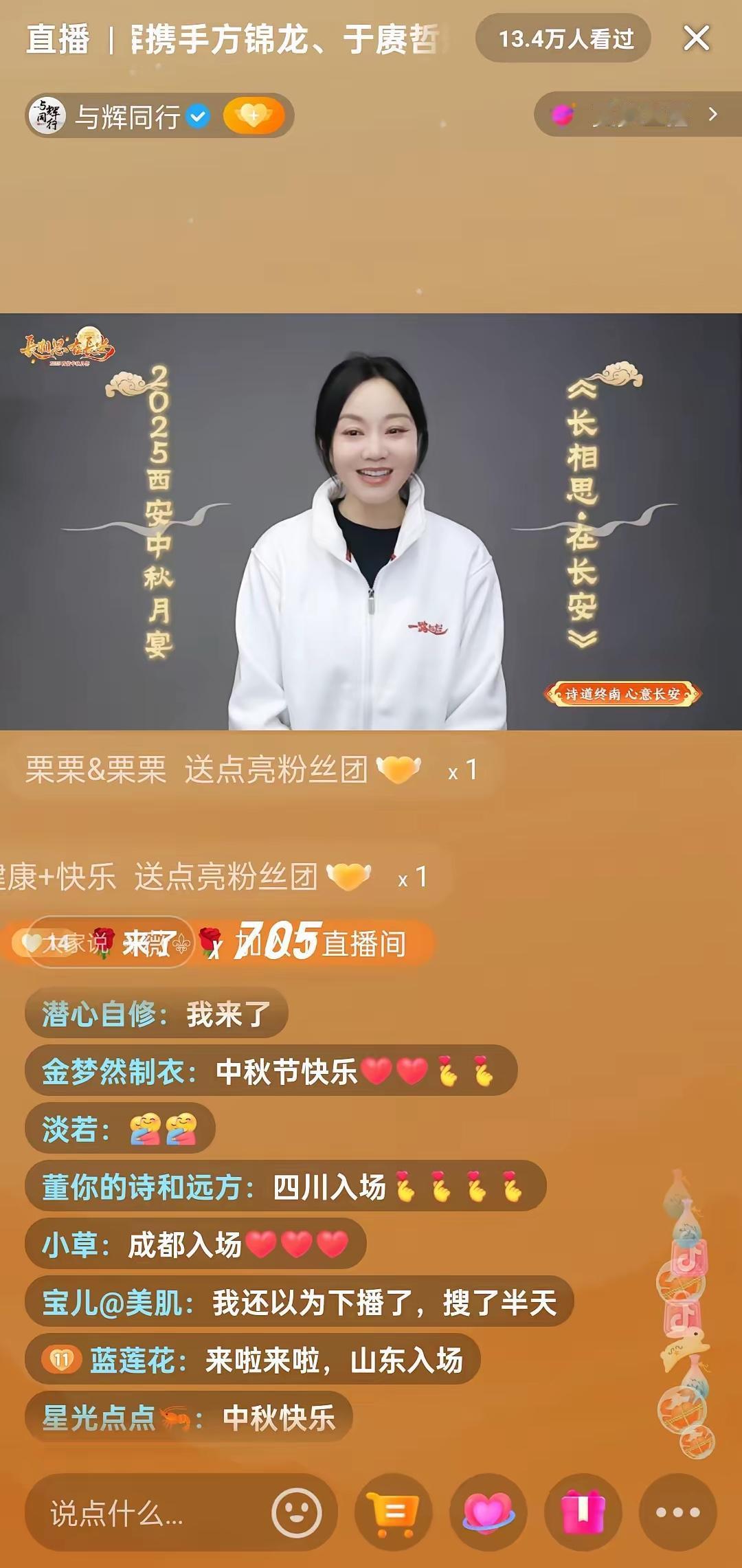 今晚董宇辉在西安再次一战封神!与辉同行直播西安中秋家宴,3分钟观看人次达50万,