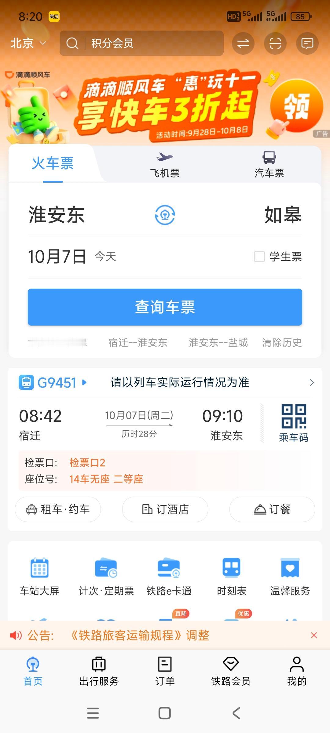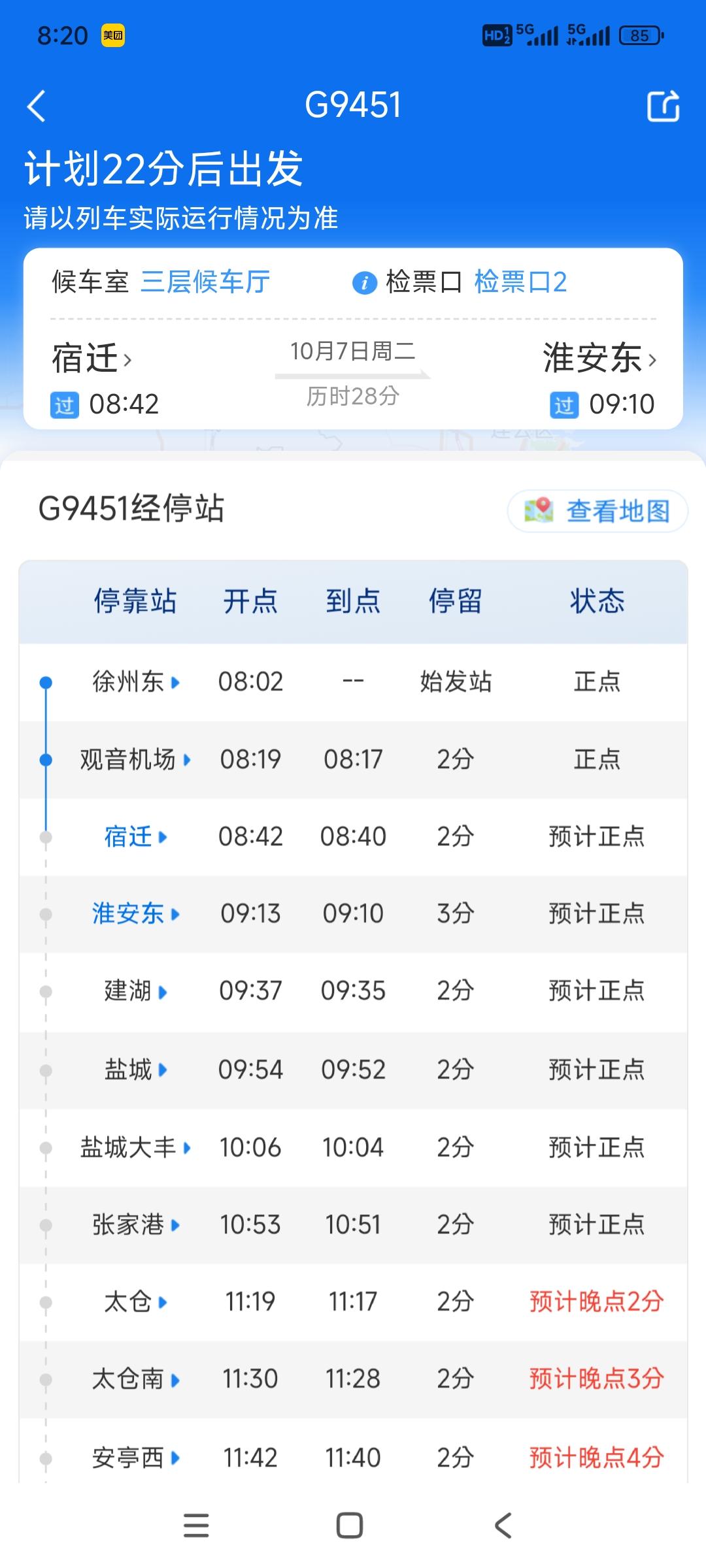 宿迁火车站虽然面积不大,只有四个站台,现在等车的人非常多,我昨天下午抢到一张淮安东的高铁站票,虽然这趟车到不了南通站或者南通西站,但是可以到了张家港高铁站,然后我花6元钱坐公交车到南通市区,这个只能算是,没办法中的办法了。高铁又快又安全,国庆放假,大家提前很多天就买好火车票,而我是10月4日才知道自己放假是10月6日和10月7日这两天时间。