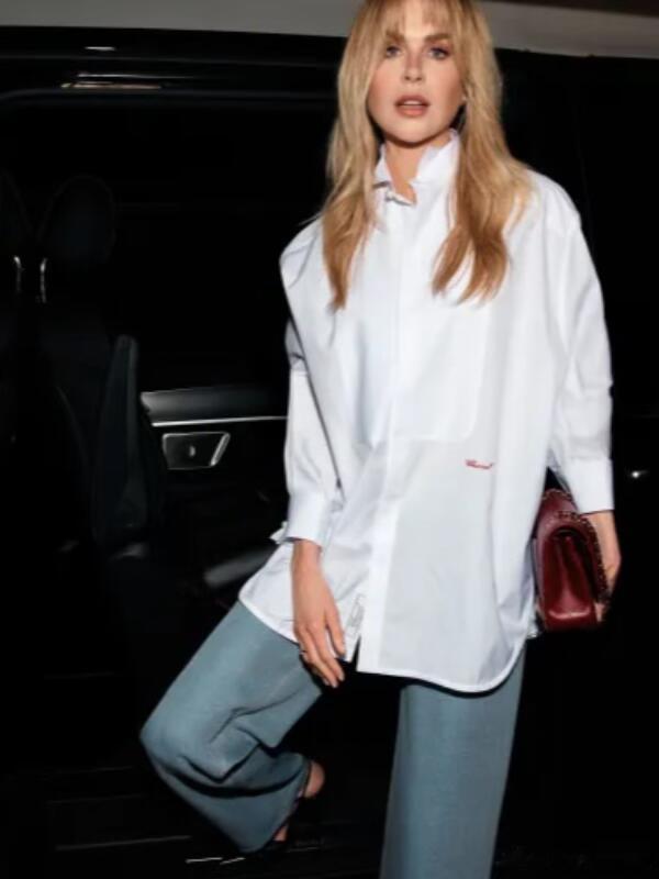 时隔二十多年再次和香奈儿合作,在官宣图上,她已经率先上身马修布拉齐的香奈儿秀场造型,以宽松白色燕尾衬衫搭配阔腿牛仔裤,预告了香奈儿的新风格。
