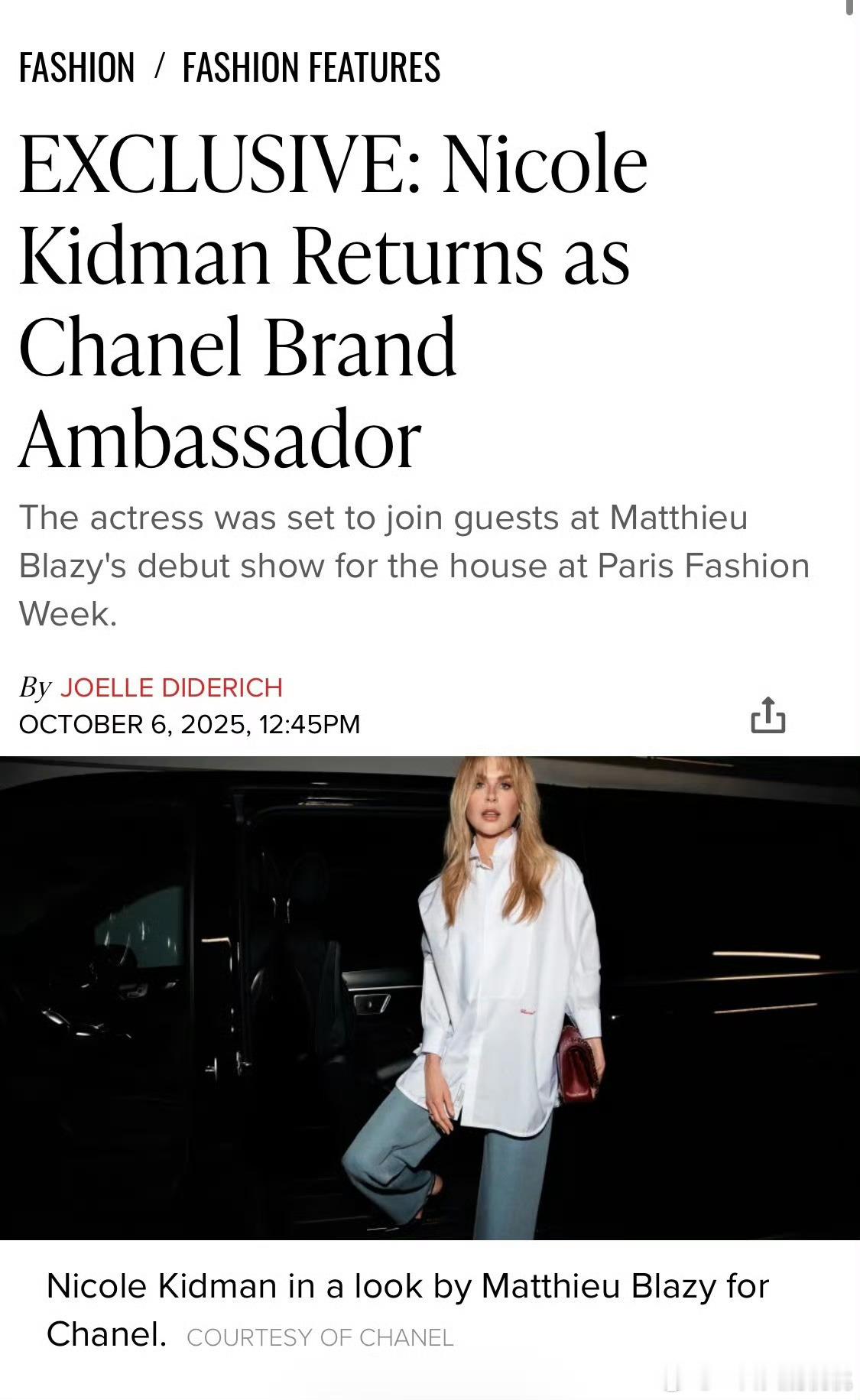 香奈儿正式宣布妮可基德曼成为品牌形象大使,这位奥斯卡影后也出席了新任创意总监Matthieu Blazy为品牌呈现的首秀!
