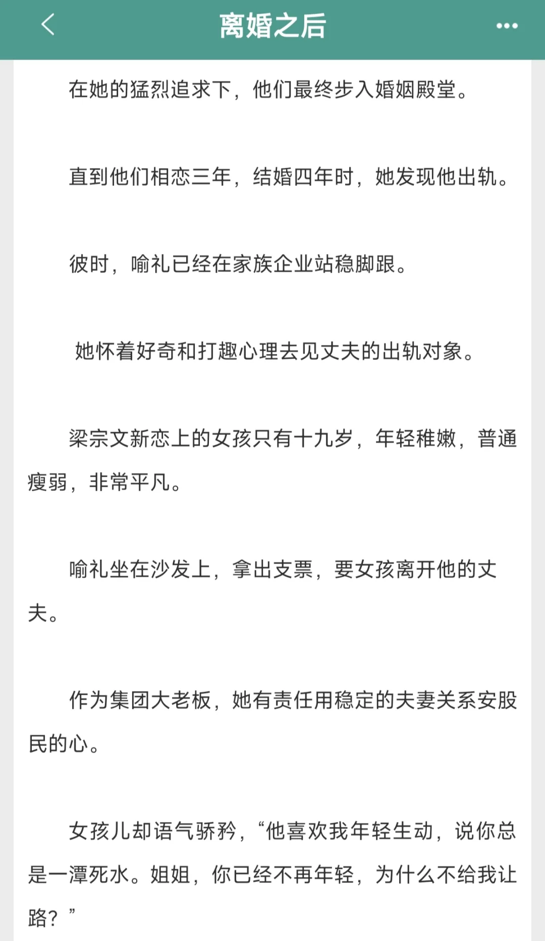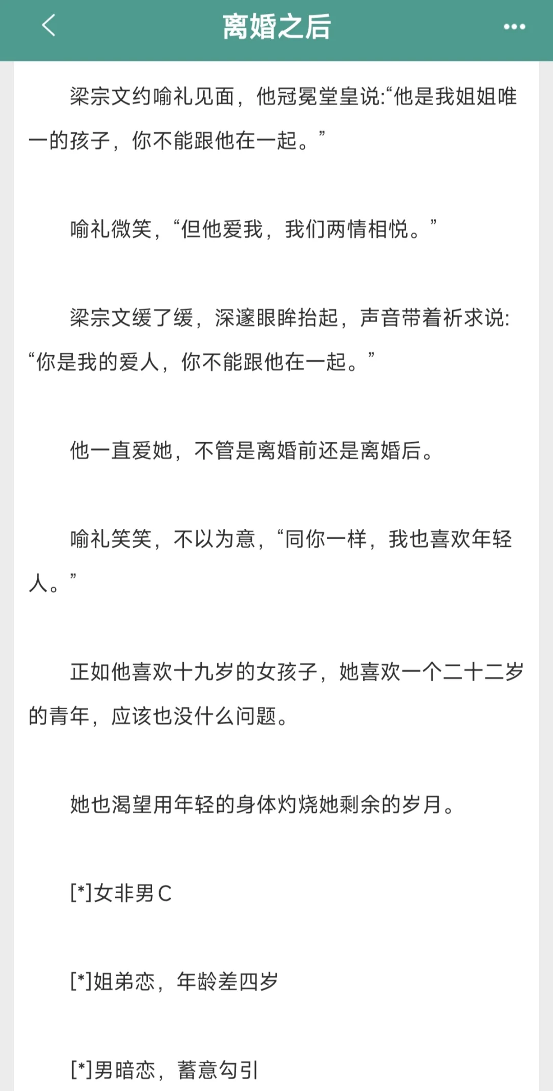 女主喻礼是雷厉风行的集团掌权人,美艳强势却为爱孤注一掷,倒追年长十岁的丈夫梁宗文四年,却在撞破他出轨后果断离婚后。男主程濯用一场场蓄谋已久的“巧合”将她引诱到身下,步步为营,终于结束6年暗恋!
